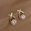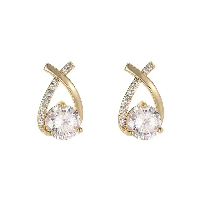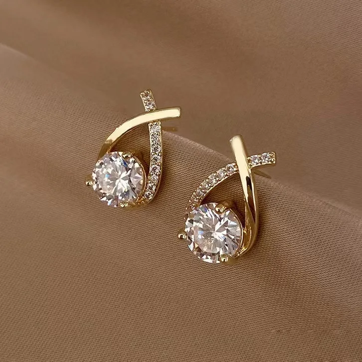 925 Silver Needle Korean Fashion Zircon Geometric Earrings For Women Jewelry 2025 Trending Luxury Crystal Cross Stud Earrings