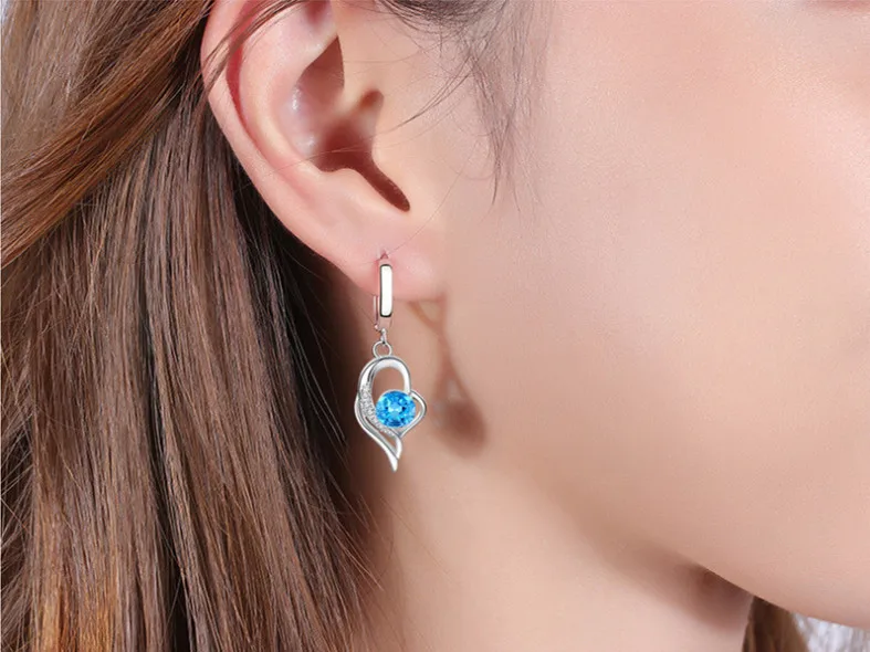 925 Sterling Silver New Woman Fashion Jewelry High Quality Blue Pink White Purple Crystal Zircon Hot Selling Earrings