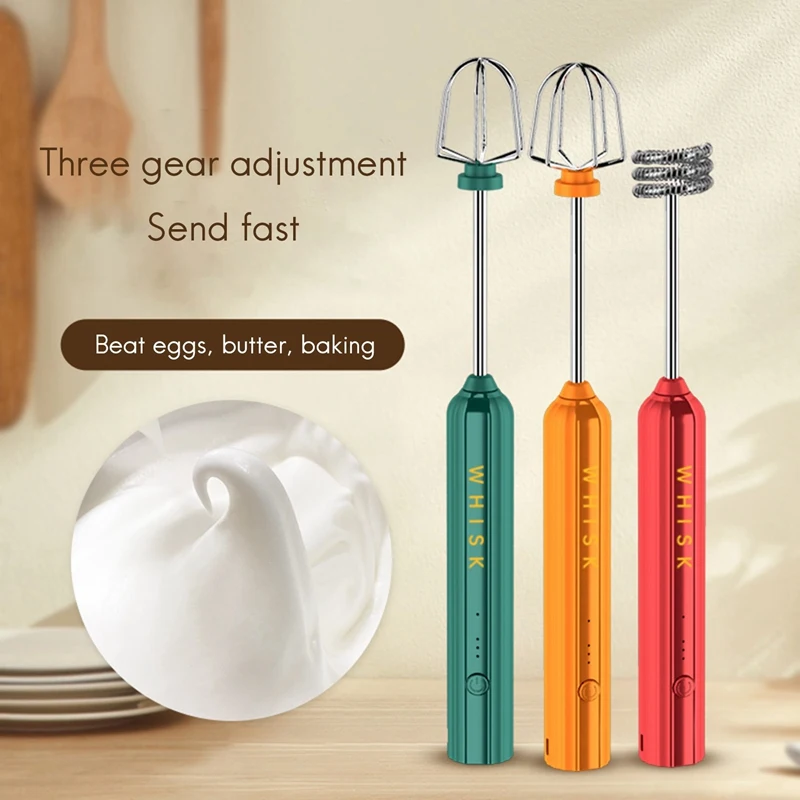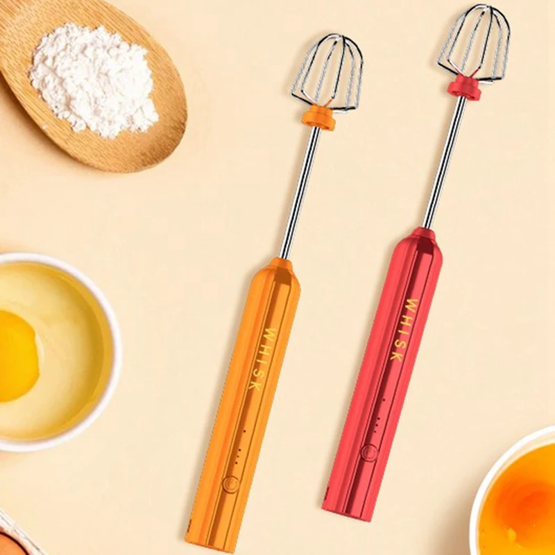 ABRW-USB Rechargeable Electric Whisk Egg Beater Handheld Coffee Blender Household Milk Shaker Mixer Frother Foamer