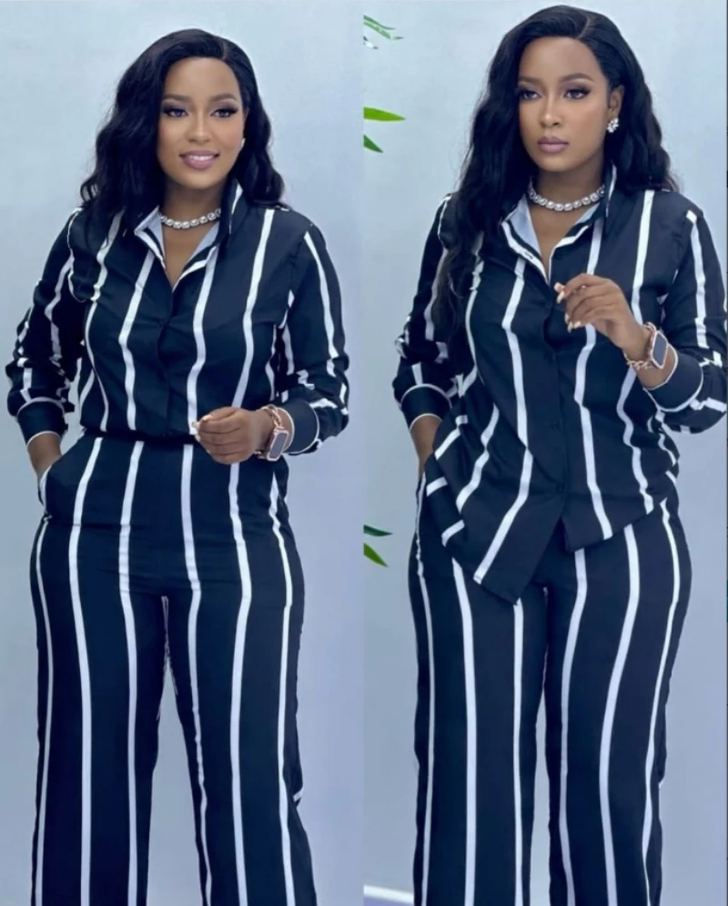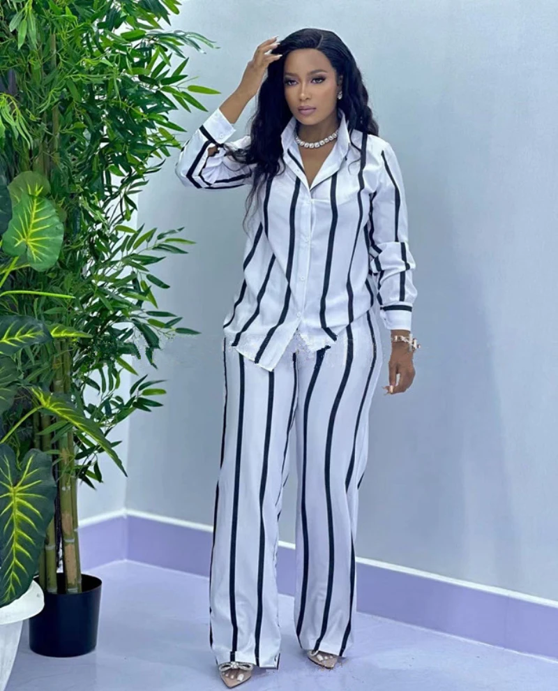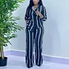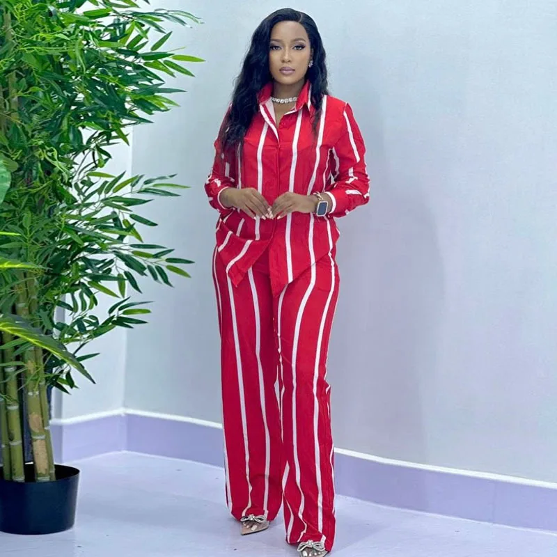 African Fashion Stripe Two Piece Set Women Spring Autumn Casual Button Long Sleeved Shirt Wide Leg Pants Two Piece Set Women