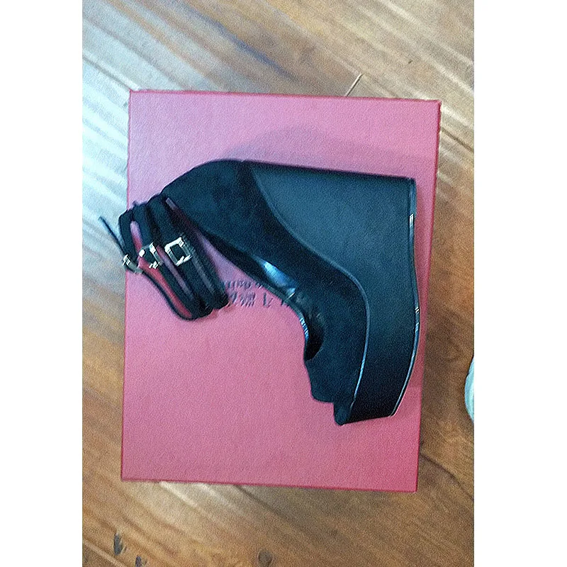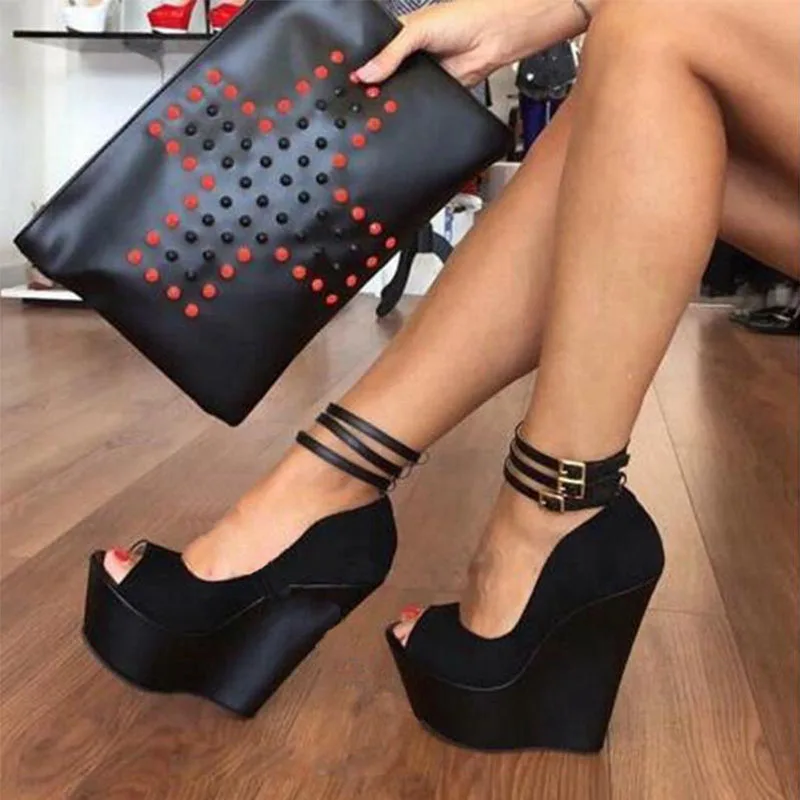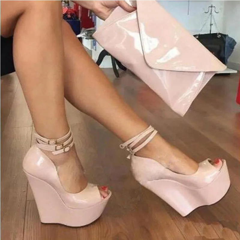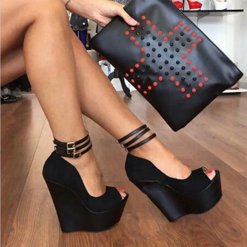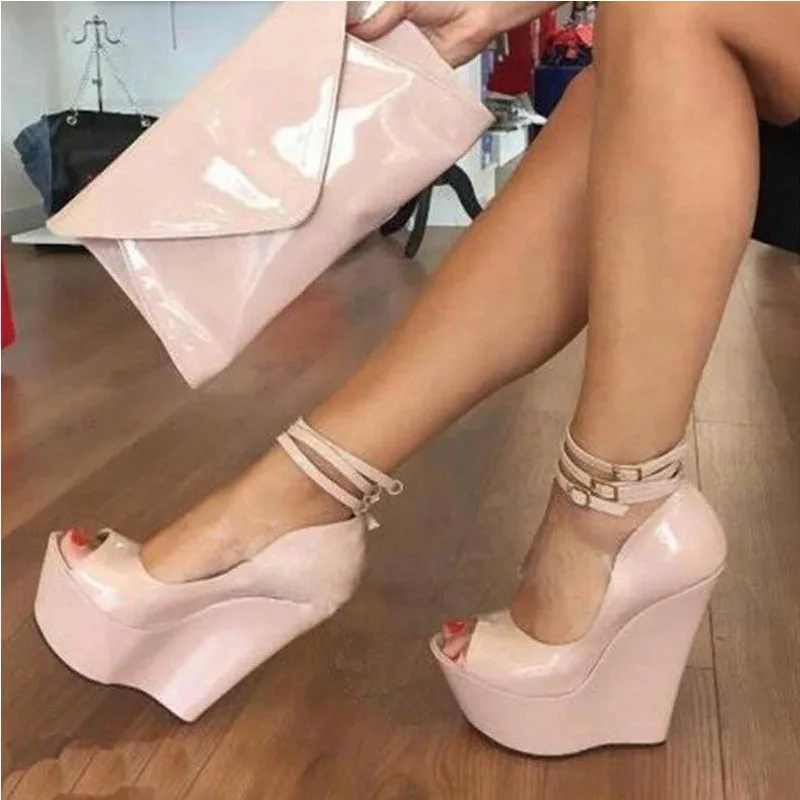 Arden Furtado Summer Peep toe Belt buckle Wedges Pumps Round toe Shallow Platform Super high heel Sexy Ankle buckle Single shoe
