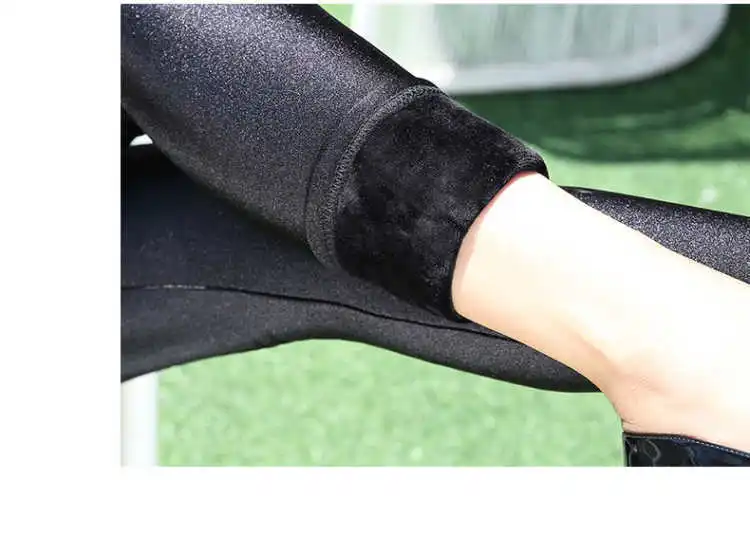 Autumn Winter Thick Leggings Fashion Solid Slim Pants Lady fleece Warm Leggings Casual Black Shiny High Waist Leggings