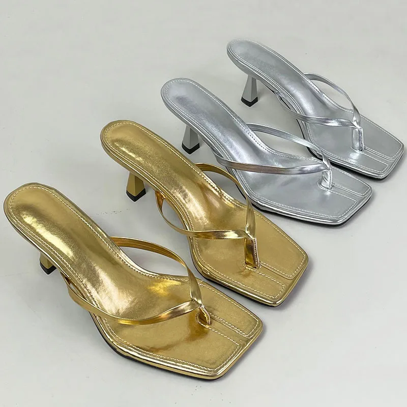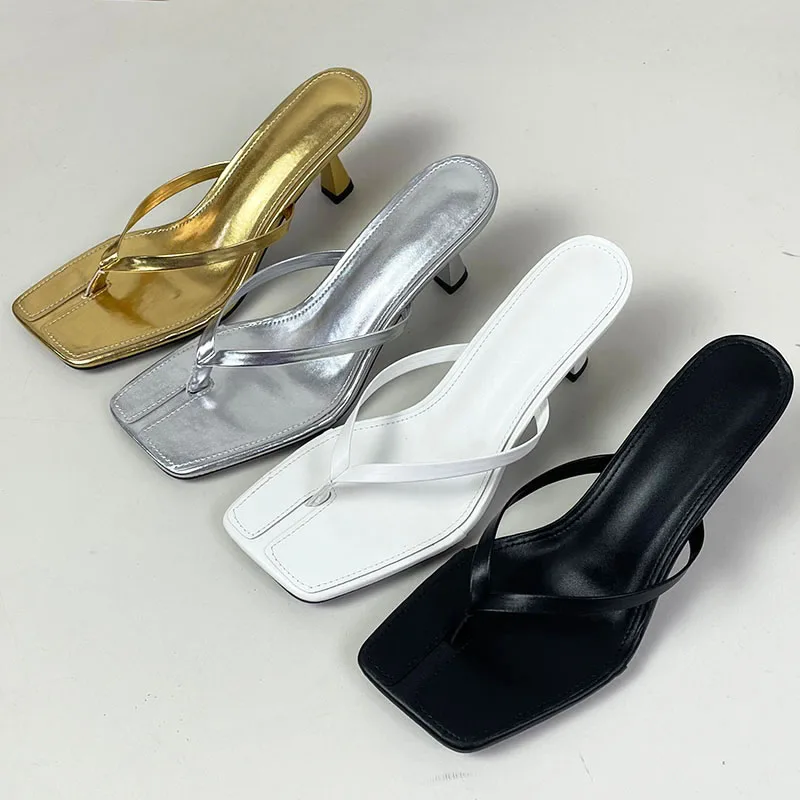 Big Size 43 Ladies Heels Slippers Pumps Shoes Female Casual Footwear Fashion Shallow Women Heeled Sandals Slides Flip flops