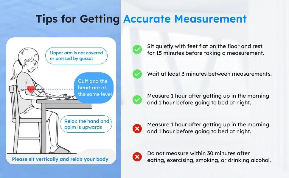 The large LED display with clear and oversized numbers, makes it easy to read your real-time blood pressure and pulse rate. High precision chip of large LED touch screen provides clinically accurate readings, giving the most exact systolic, diastolic pressure and pulse rate data by one touchable button and easy to read the backlist screen with multi-colored LED indicator lights.