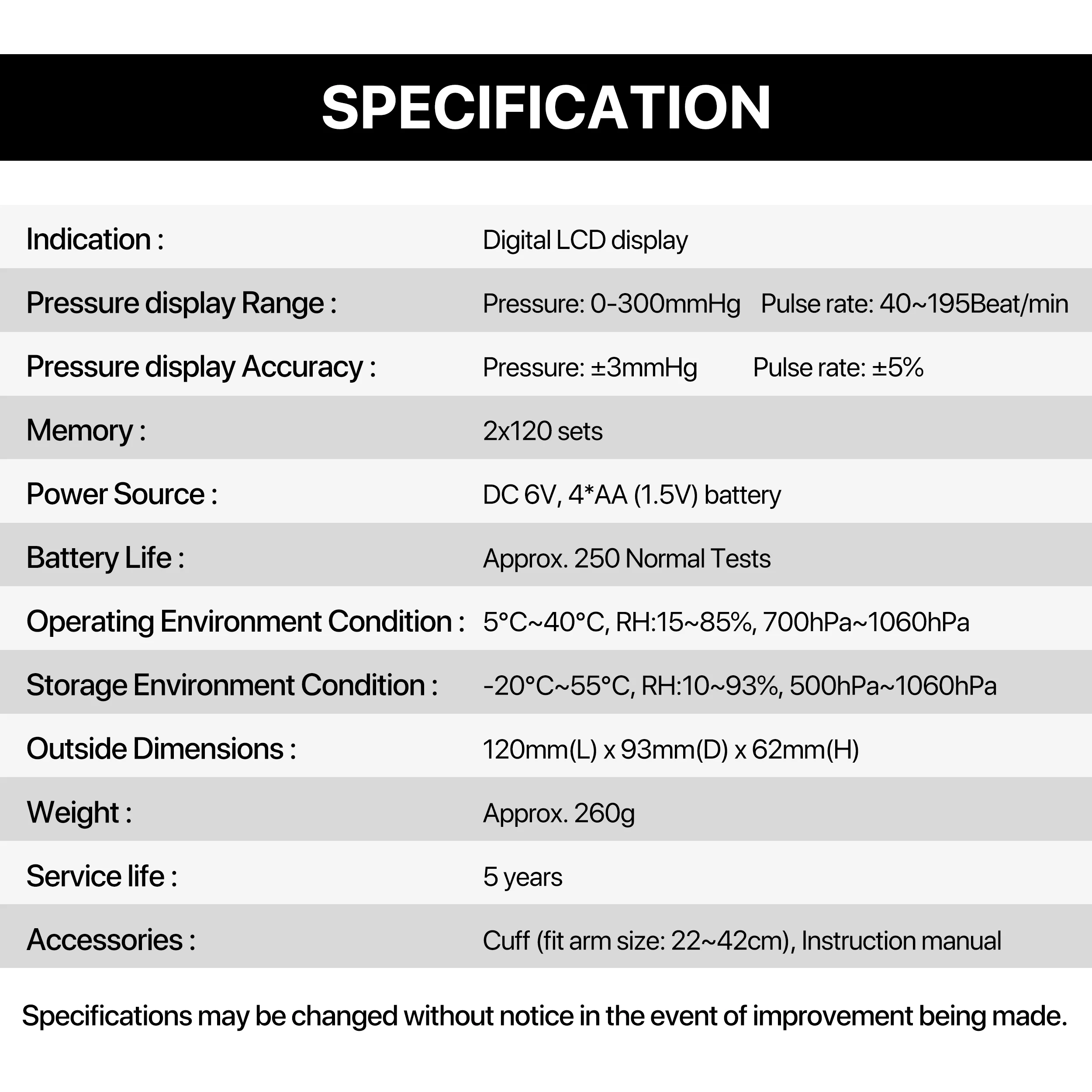 5.Cuff tightness detection (22-42cm cuff)