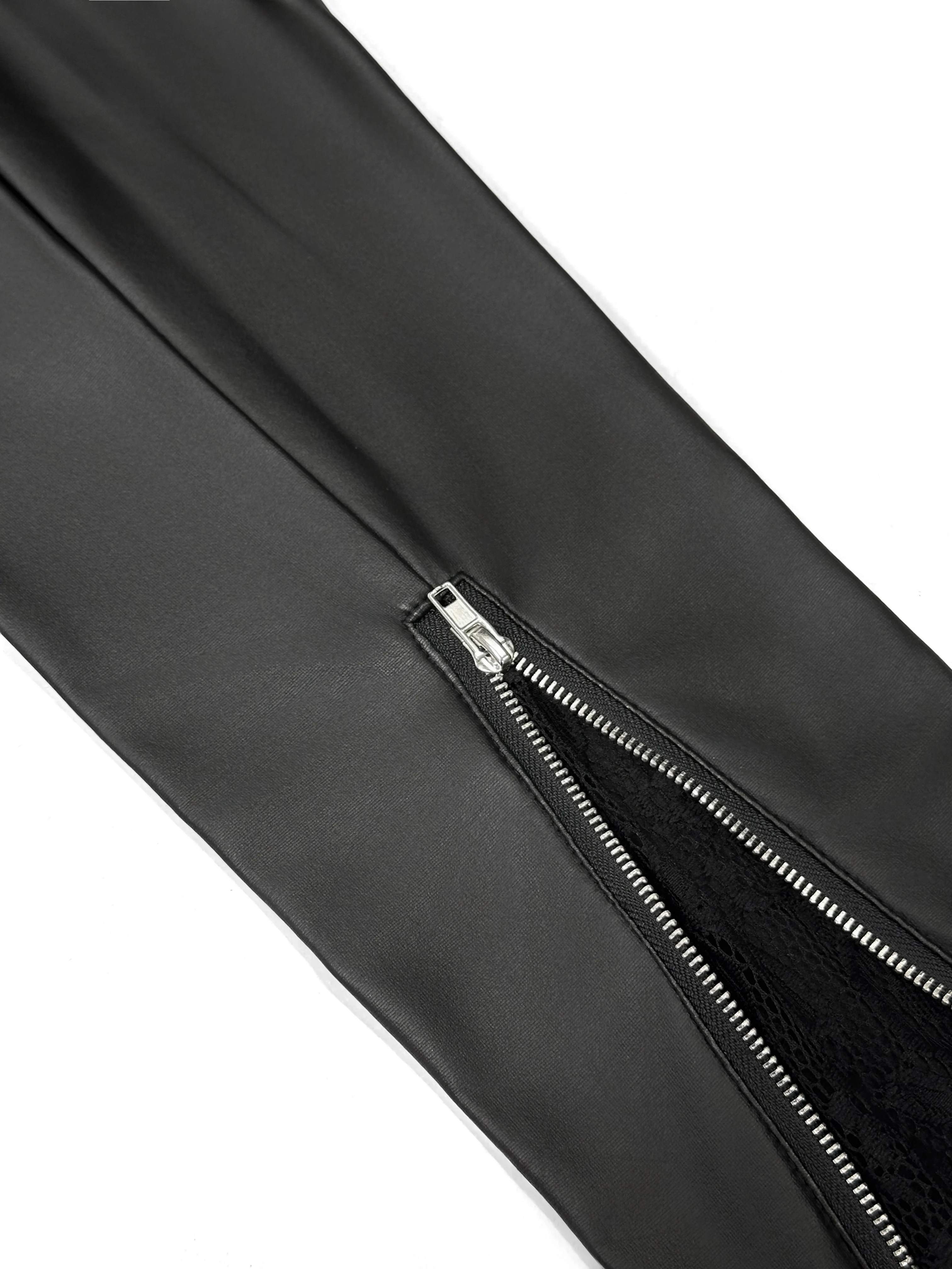 Black tight pants for women, side stitching lace, hip hugging high waist slimming pants, stretchy pants 780