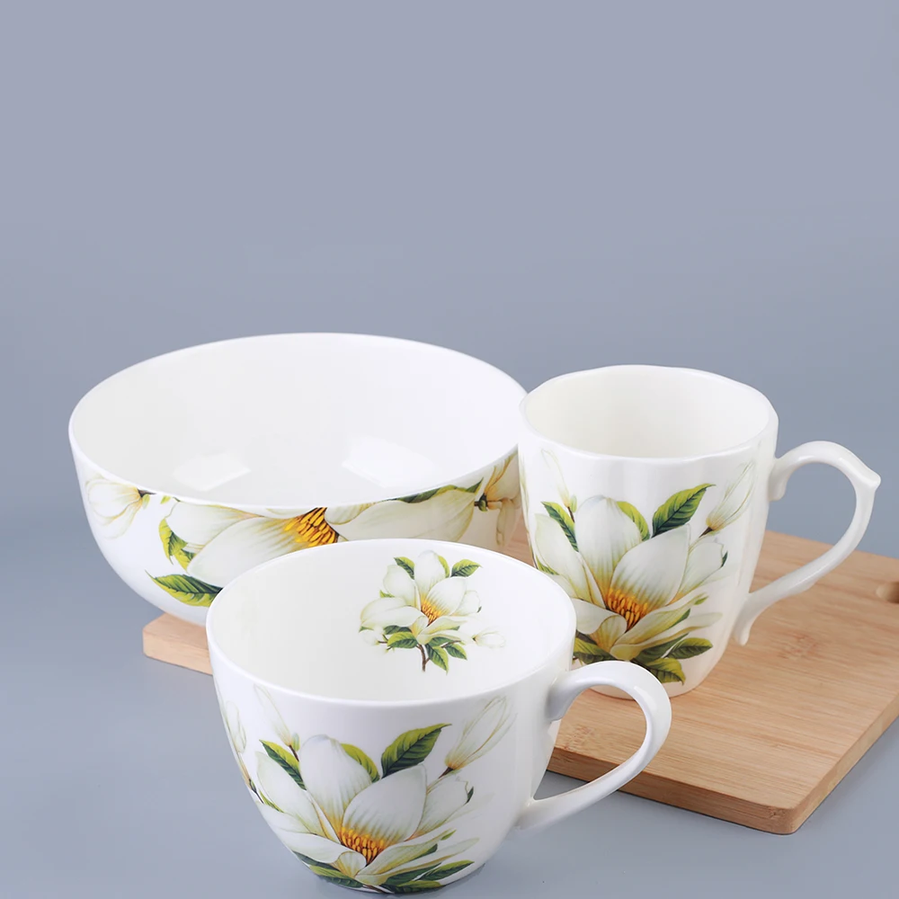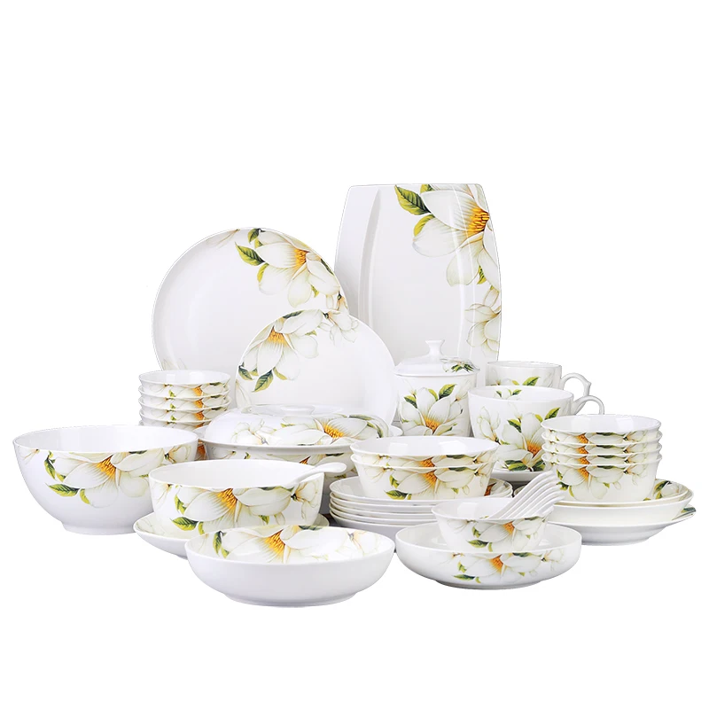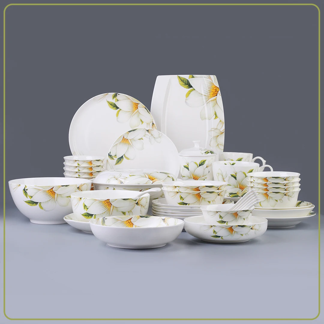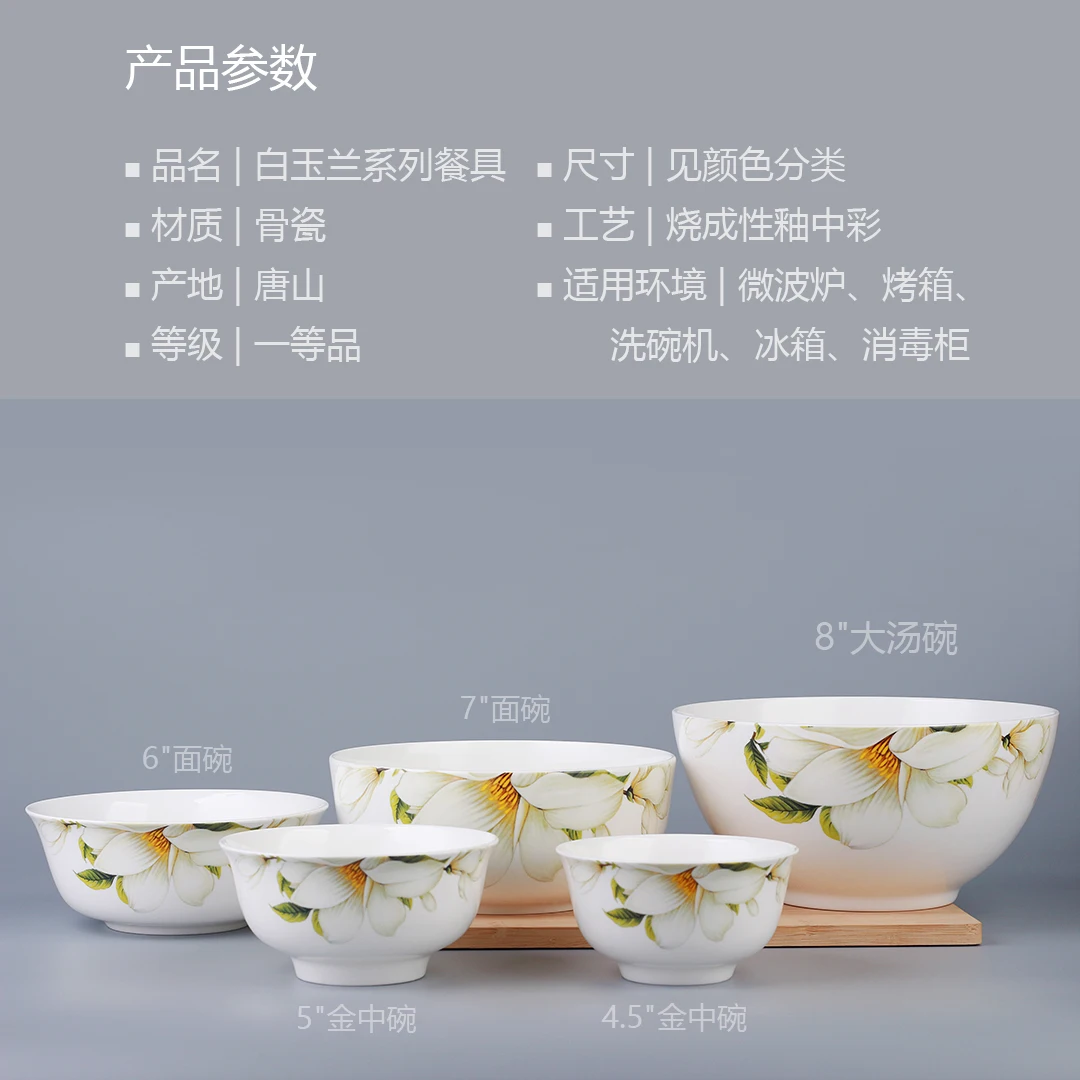 Bone porcelain tableware, household dishes, eating bowls, noodle bowls, large soup bowls, household dining utensils, and mugs