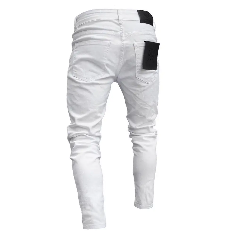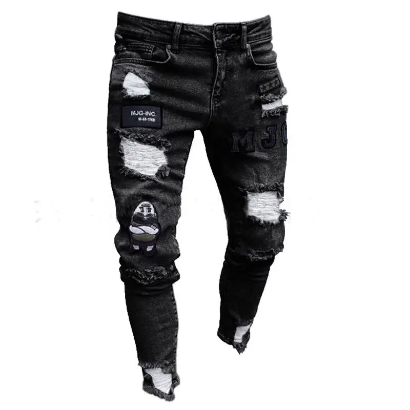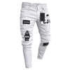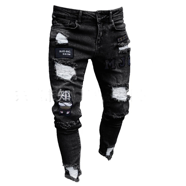 Bottoms 3 Styles Stretchy Ripped Skinny Biker Embroidery Print Jeans Destroyed Hole Slim Fit Scratched High Quality Jean