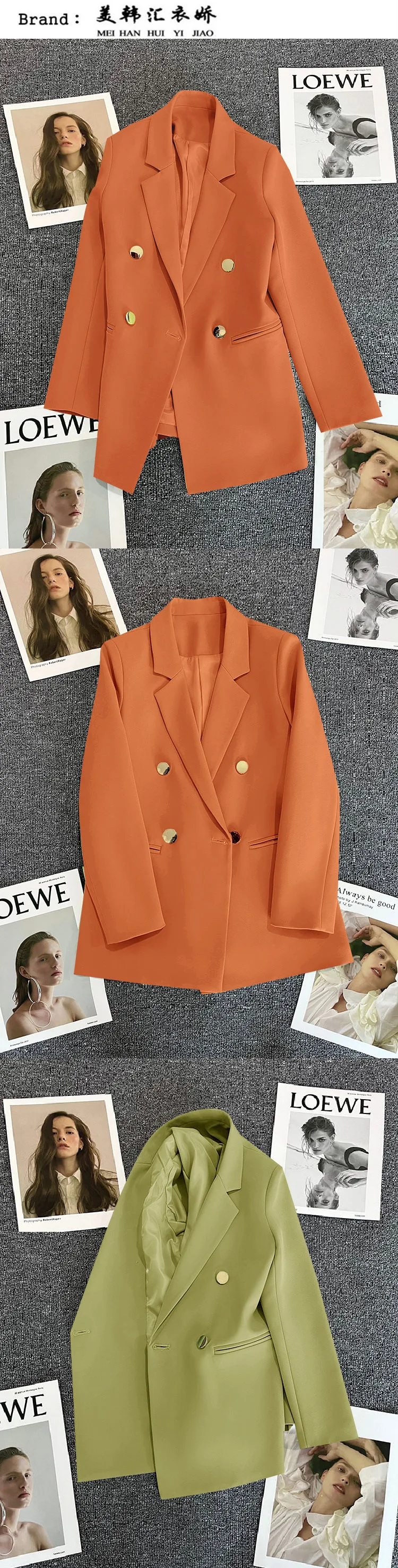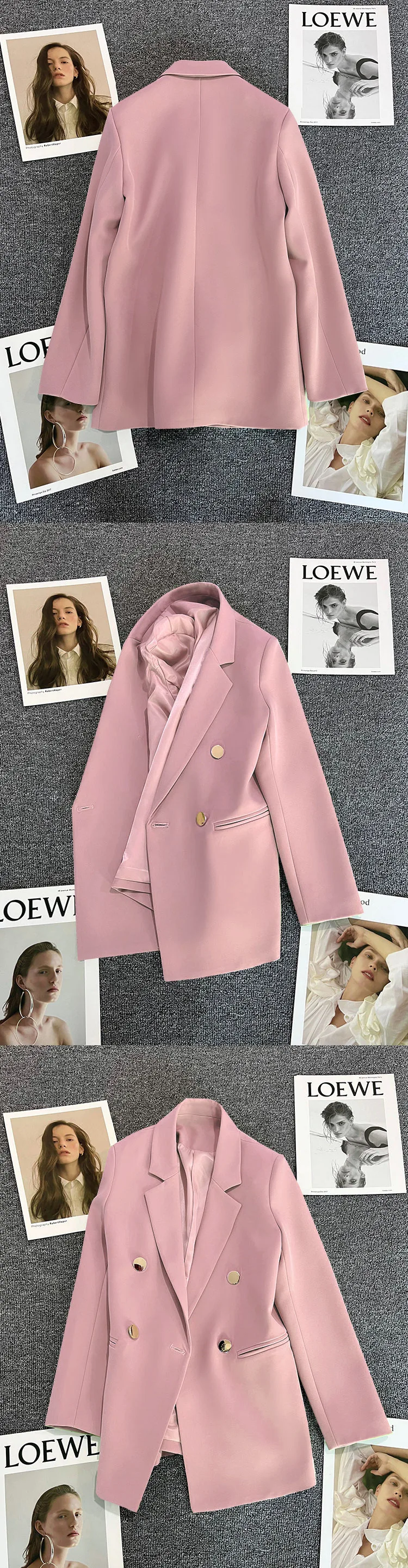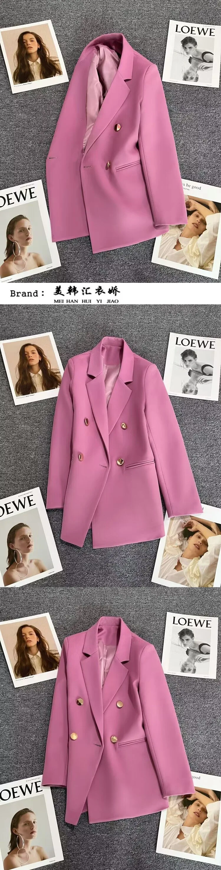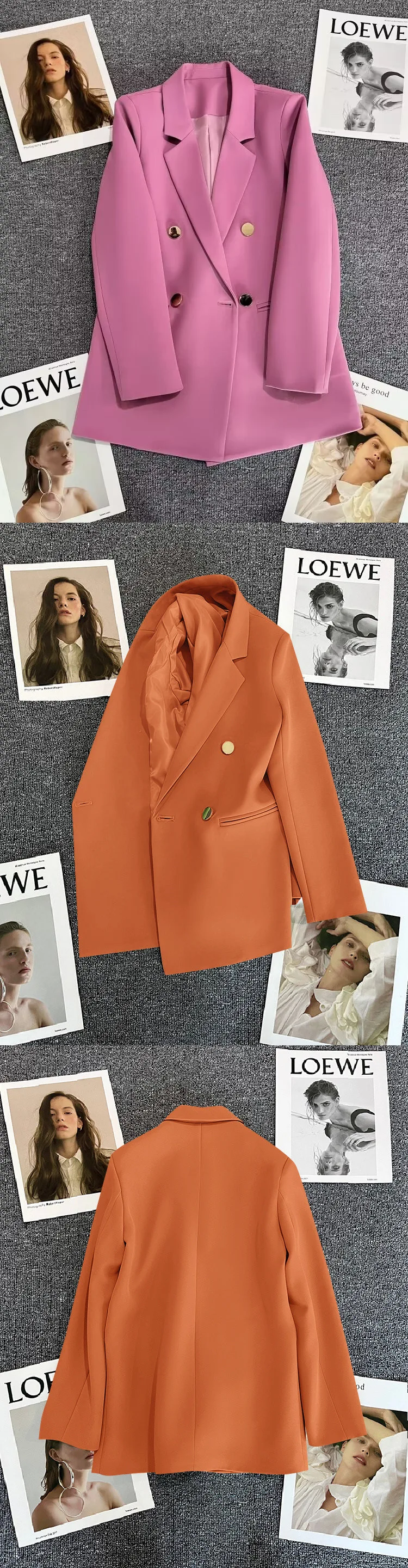 Candy Color OL Blazer Spring Autumn Notched Long Sleeve Double Breasted Metal Button Slim Pocket Blazer Coats ZXFS-S602
