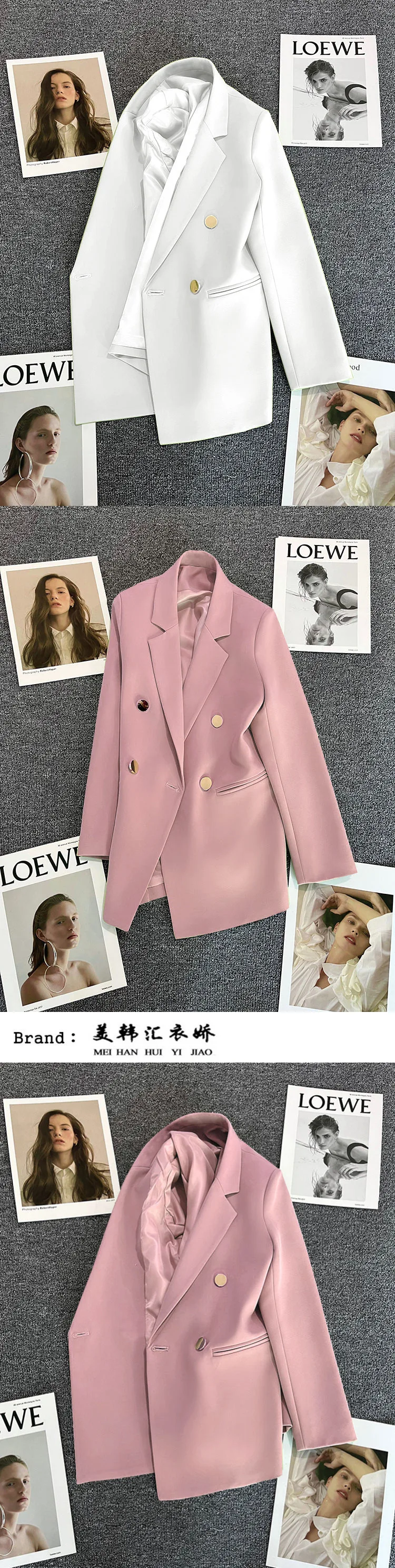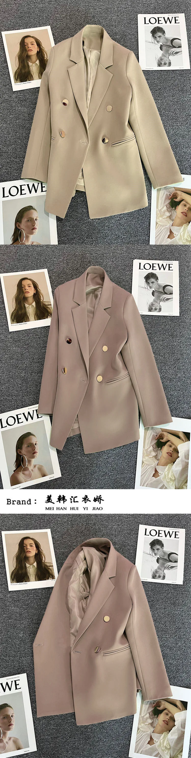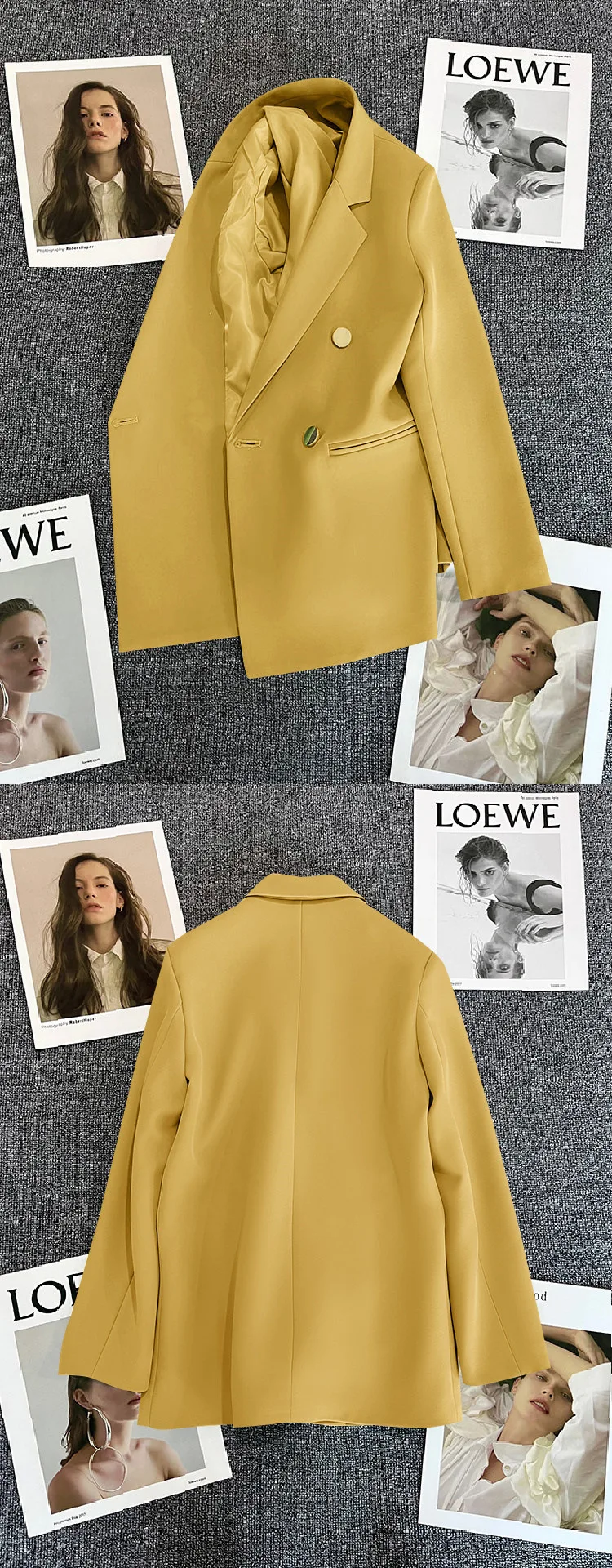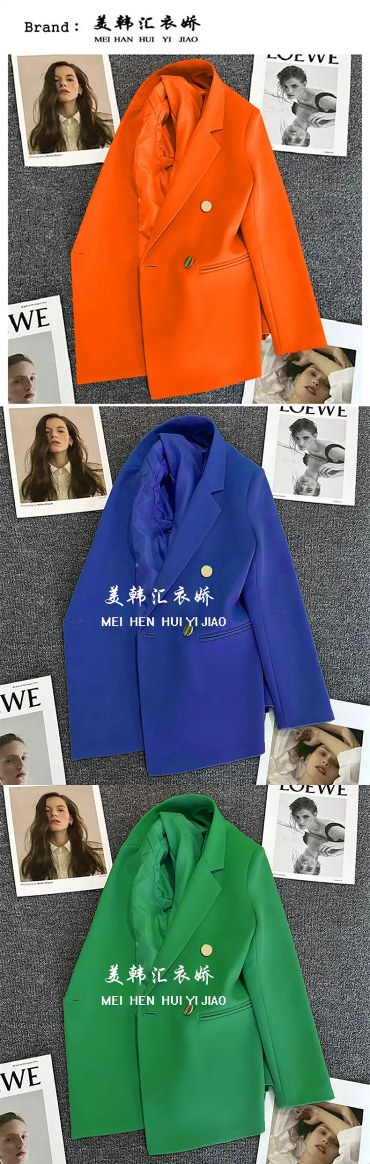 Candy Color OL Blazer Spring Autumn Notched Long Sleeve Double Breasted Metal Button Slim Pocket Blazer Coats ZXFS-S602