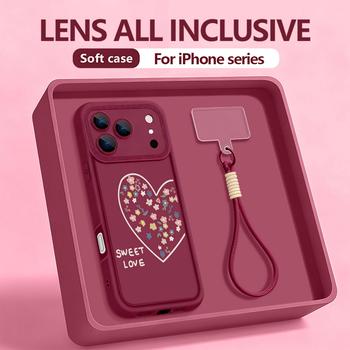 Sweet Love Hearts Pattern Lanyard Phone Case For iPhone 17 Pro 16 14 15 Pro Max 12 13 Pro Max Air 16e 11 Soft Wrist Strap Cover