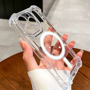 Luxury Wireless Charge Magsafe Transparent Case For iPhone 15 16 14 13 17 12 Pro Max Plus Magnetic Shockproof Soft Bumper Cover