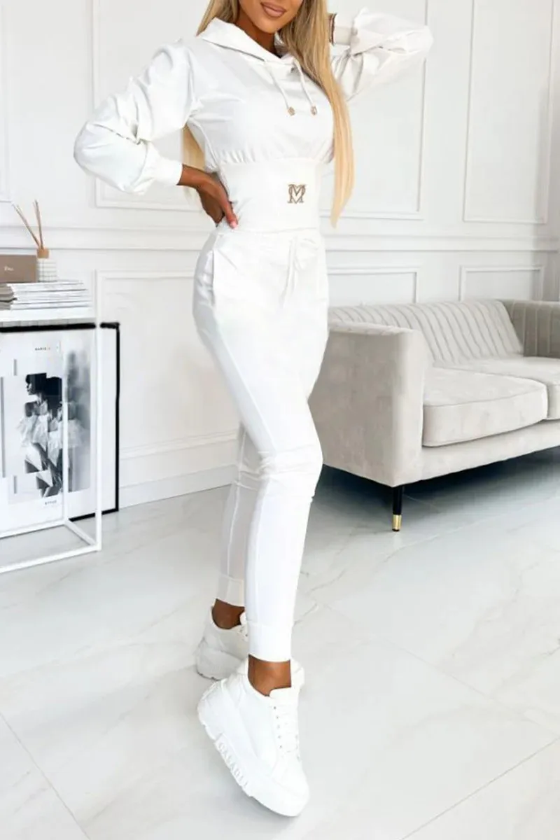 Casual Solid Color Hooded Slim Long-sleeved Top And Wide-sleeved Pants Suit Women 2025 Spring Top Lace-up Pants Suit For Women