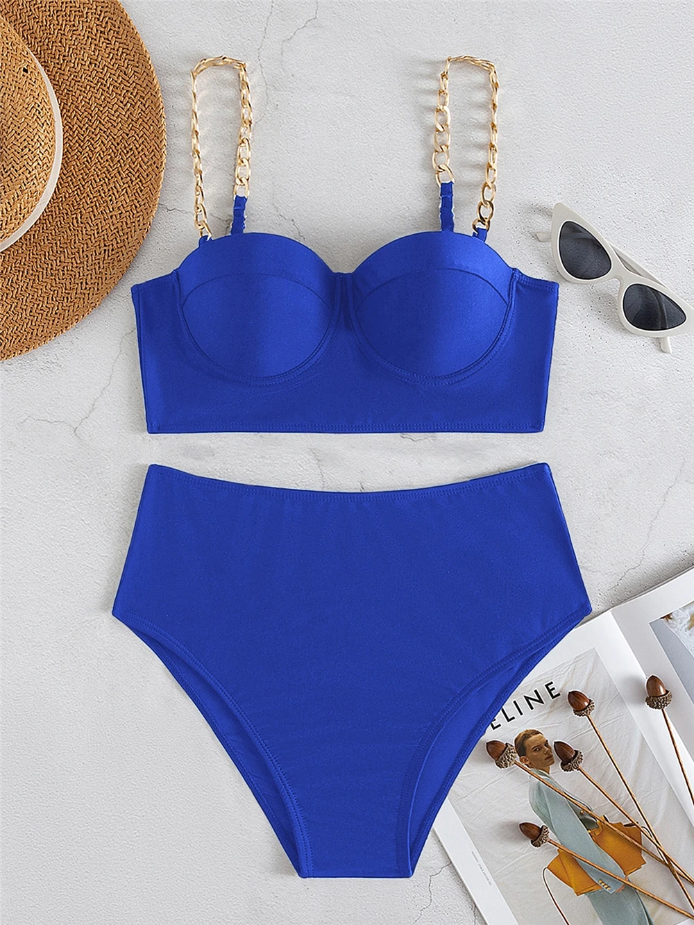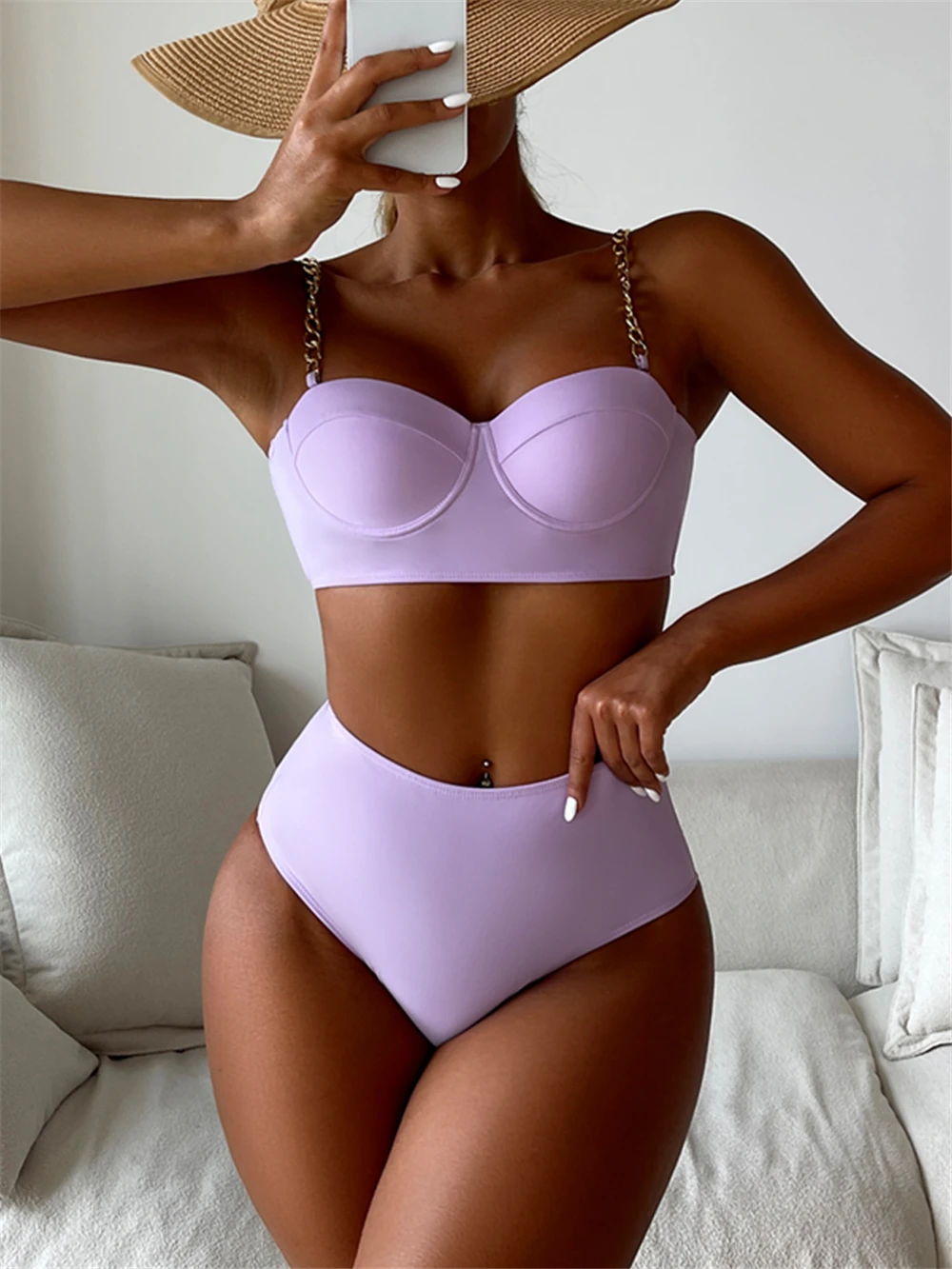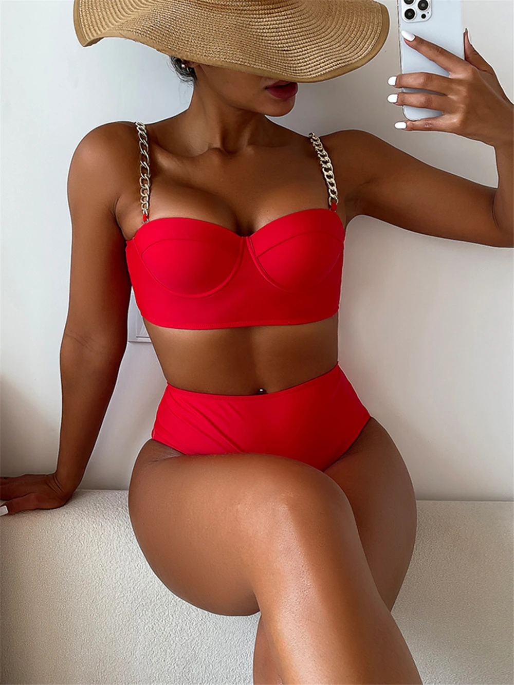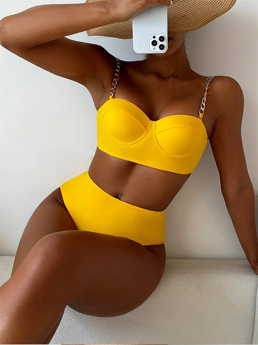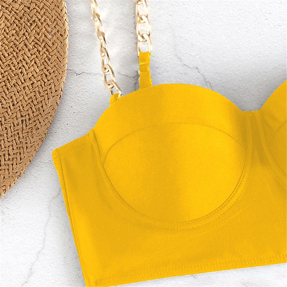 Chain Strap Bikinis 2026 Women Solid Push Up Swimsuit High Waist Swimwear Female Sexy Bathing Suit Swimming Summer Beachwear