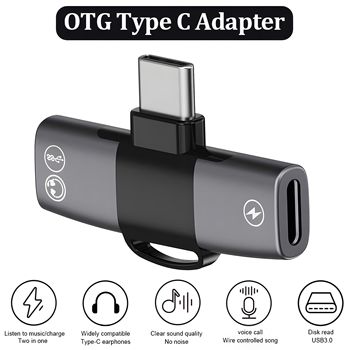 OTG Double USB Type C PD 15W Charger to Type C Jack AUX Audio Headphones Splitter Adapter for iPhone 15 Pro Max Samsung Xiaomi