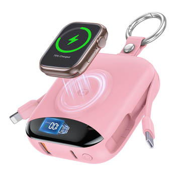 10000mAh 22.5W Fast Charging Power Bank with Built-in Cables, 4-in-1 Portable Charger with LED Display & Keychain for iWatch
