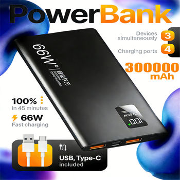 66WFast Charge Power Bank 300000mah Large Capacity Portable External Battery LED Digital Display Two-way Quick Charge For Xiaomi