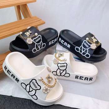 New Thick-Soled Slippers for Women, Made of Eva Material, Ultra-Light, Soft and Comfortable, Slip-On Slippers for Outdoor Wear, Cute Golden Bear Set, Beach Sandals