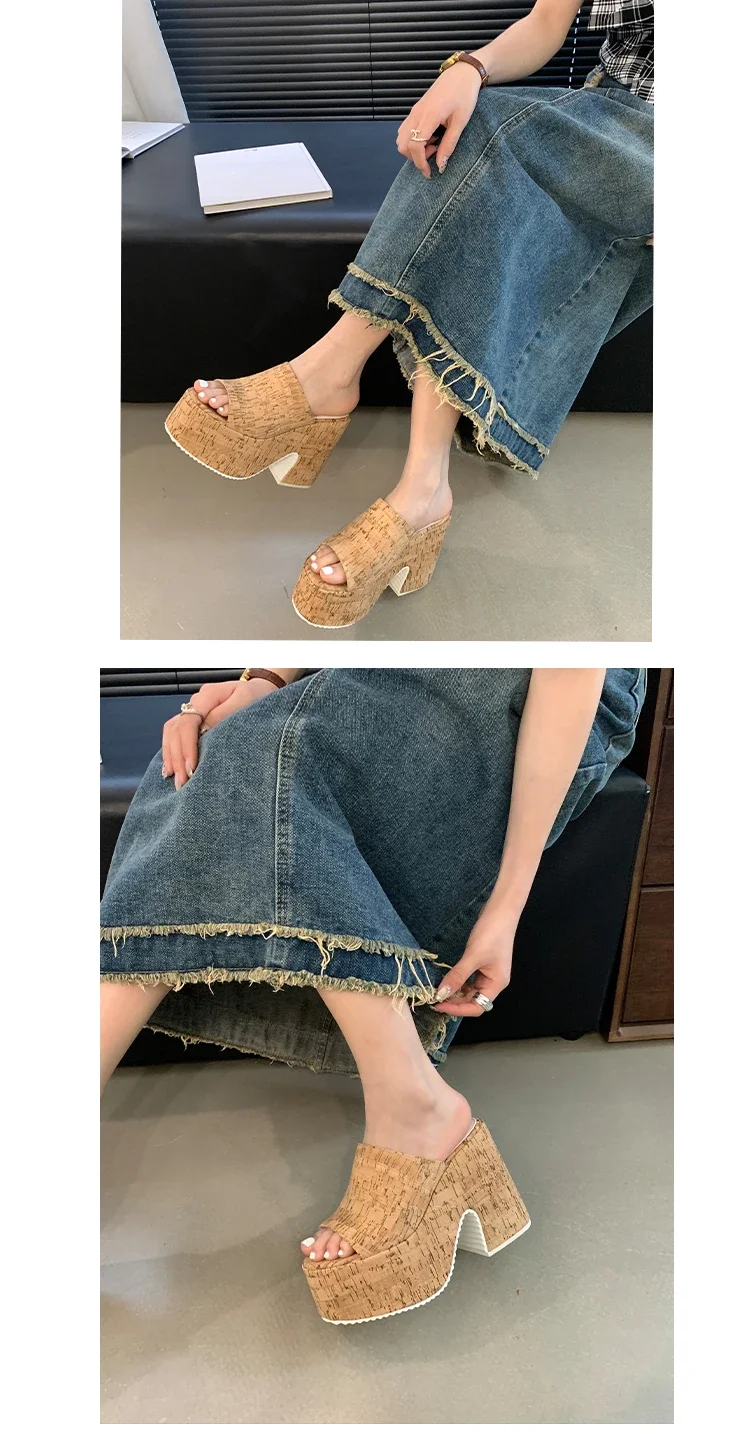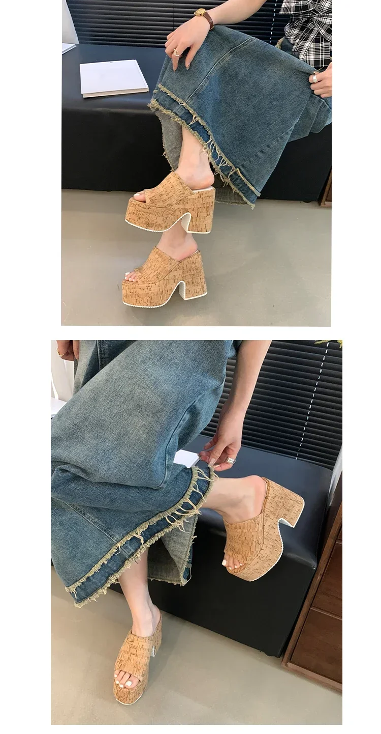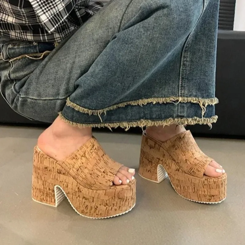 Chunky Women’s Shoes 2025 Summer Platform Peep Toe Women Slippers Super High Heels Female Fashion Sandals New Casual Pumps Shoes
