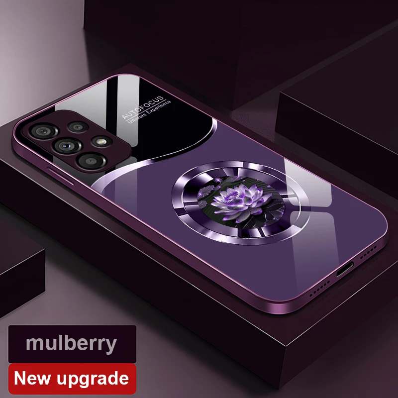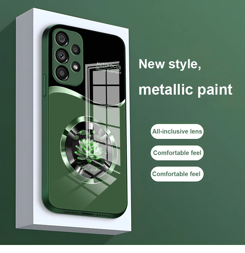 Circular Lotus Flower For Samsung Galaxy S10 4G S20 11E 30 S21 22 S24 Fe Pro S23 S25 Ultra 5G S9 Tempered Glass Phone Case