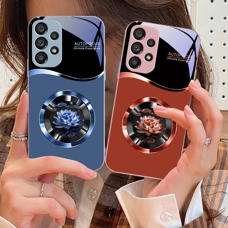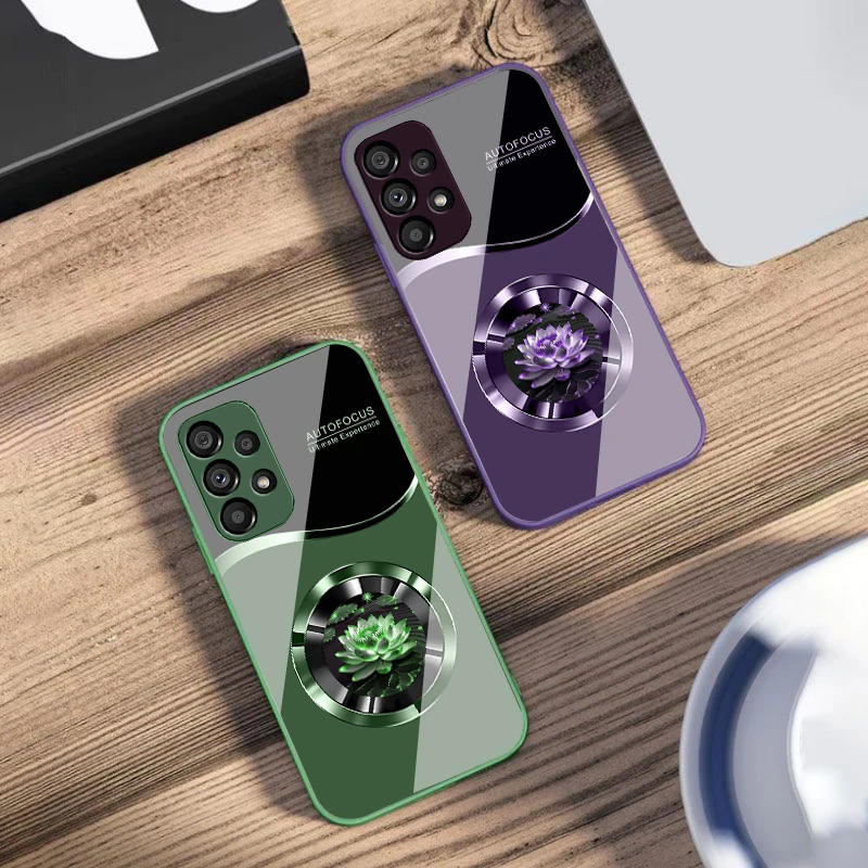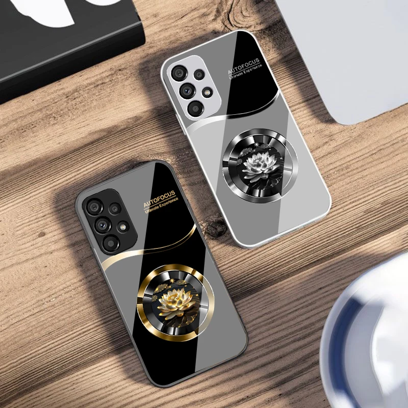Circular Lotus Flower For Samsung Galaxy S10 4G S20 11E 30 S21 22 S24 Fe Pro S23 S25 Ultra 5G S9 Tempered Glass Phone Case