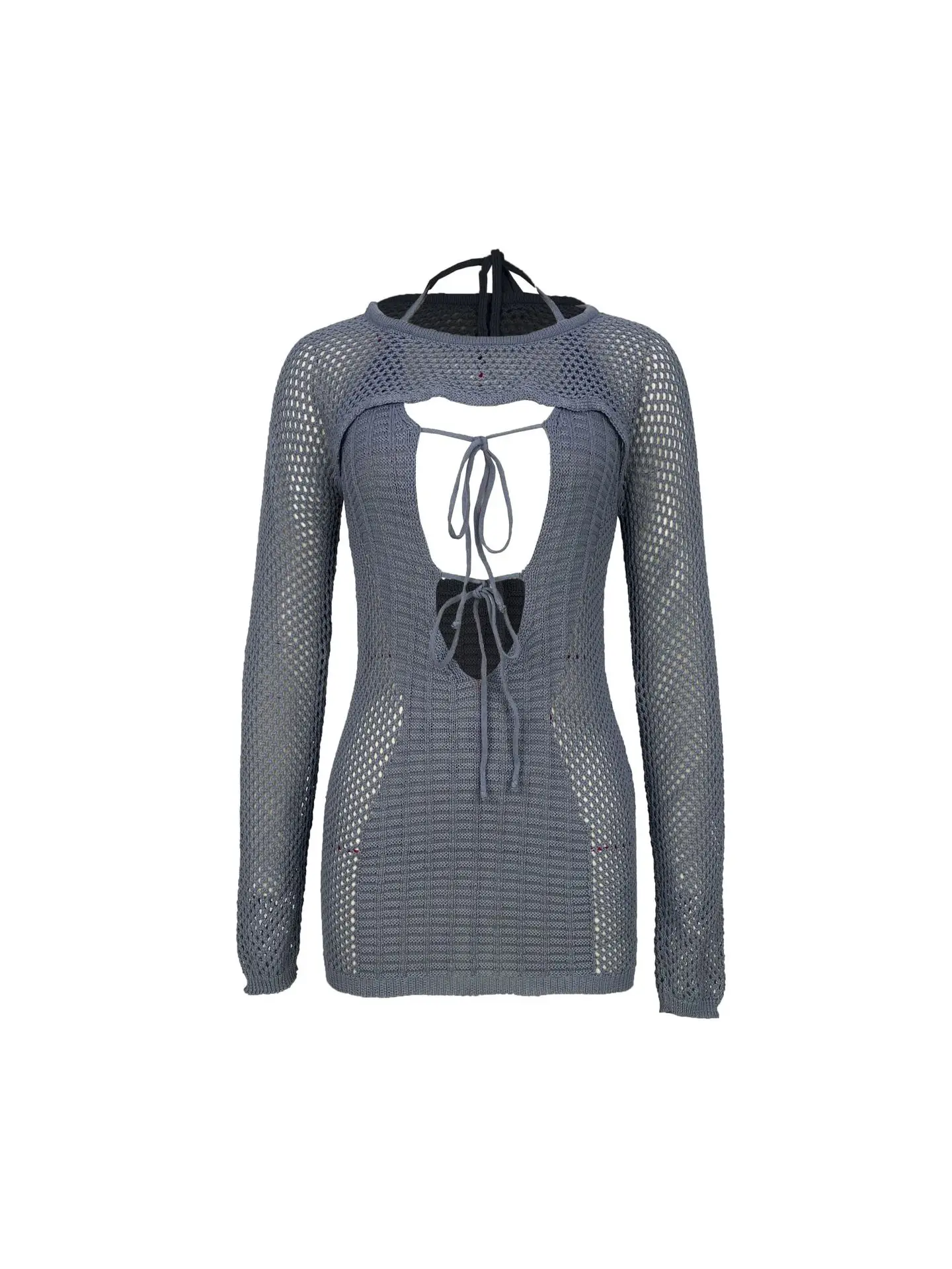 CM.YAYA Crochet Birthday Bodycon Midi Halter Neck Tie Up Dress Women 2023 Dresses with Cover-ups Two 2 Piece Sets Vestidos