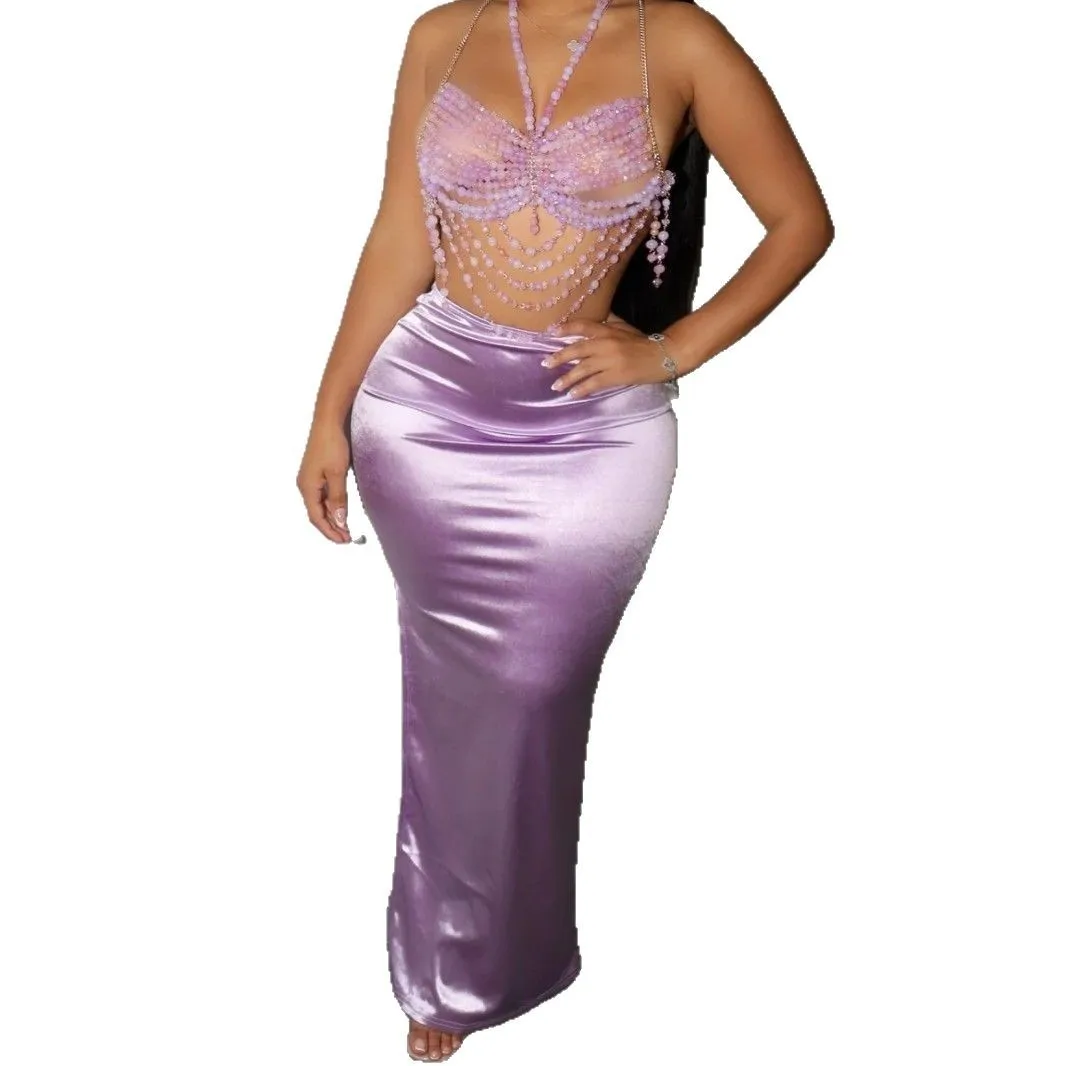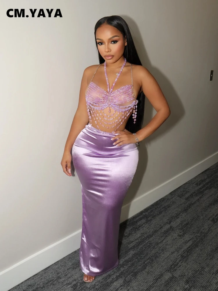 CM.YAYA Vintage Women Satin Bodycon Long Pencil Maxi Long Skirt 2025 Summer Sweet Holiday Beach Street INS Fashion OL Skirts