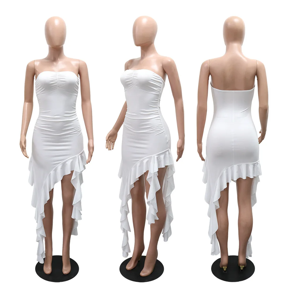 CM.YAYA Women Strapless Sleeveless Ruched Stacked Mini Dress 2025 Summer Beach Vacation Party Birthday Street Sexy Dresses