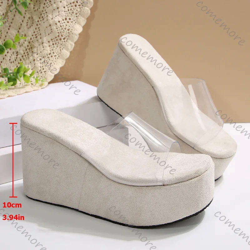 Comemore Summer PVC Transparent Strap Sandals Slipper Fashion Thick Bottom Outside Wear Women’s Shoes 10cm High Heeled Sandales