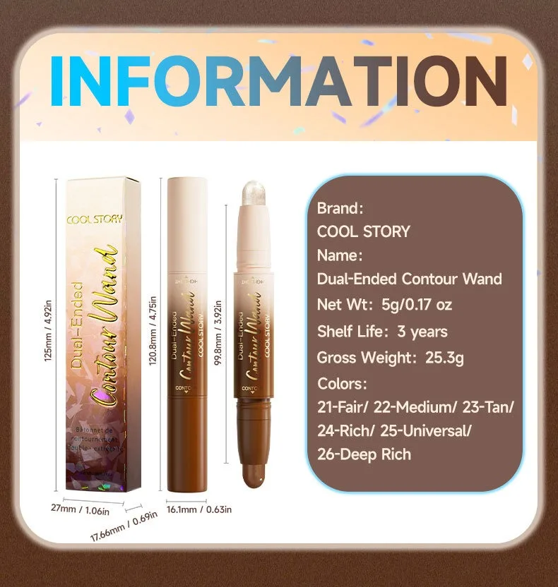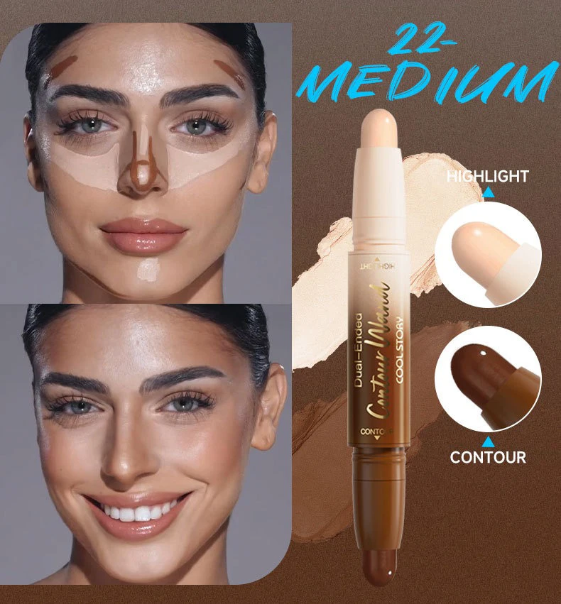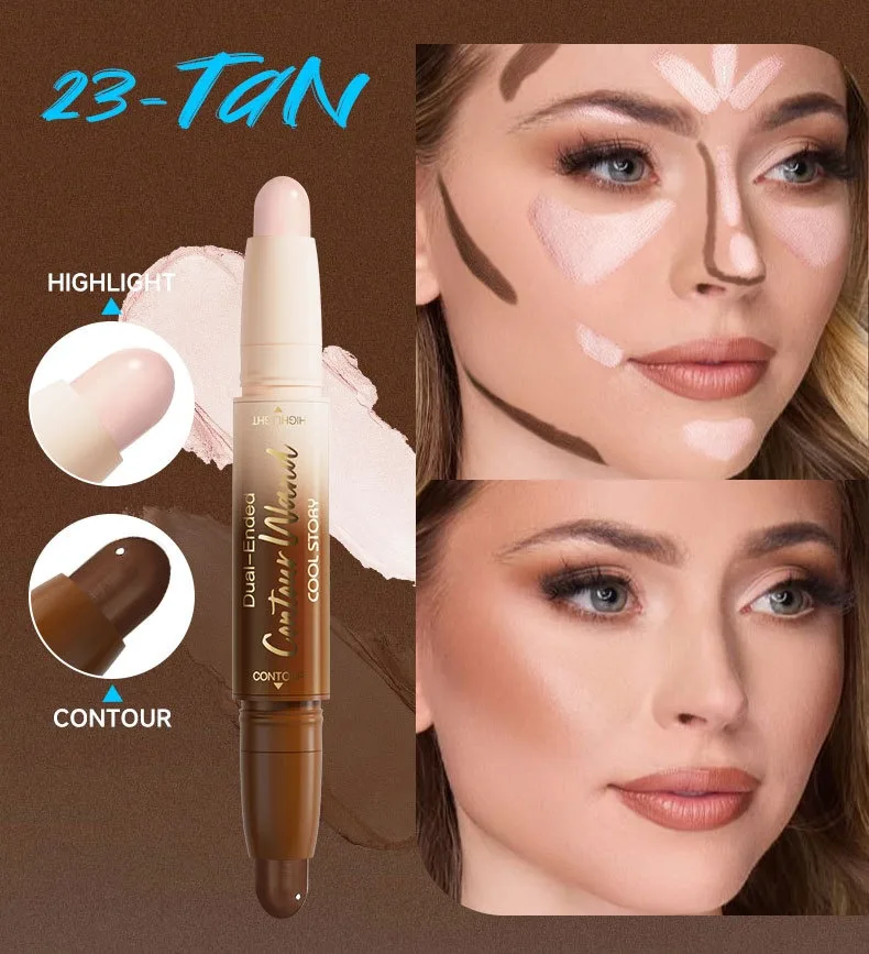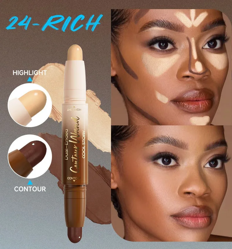 Contour Stick Double-Ended Highlight and Shadow Cream Waterproof Full Coverage Concealer Natural Finish Makeup for All Skin Tone