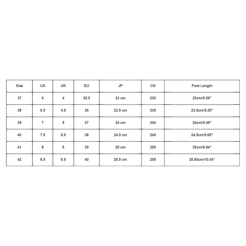 | Size:40 | US:7.5 | UK:5.5 | EU:38 | JP:24.5 cm | CN:245 | Foot Length:24.5cm/9.65” |