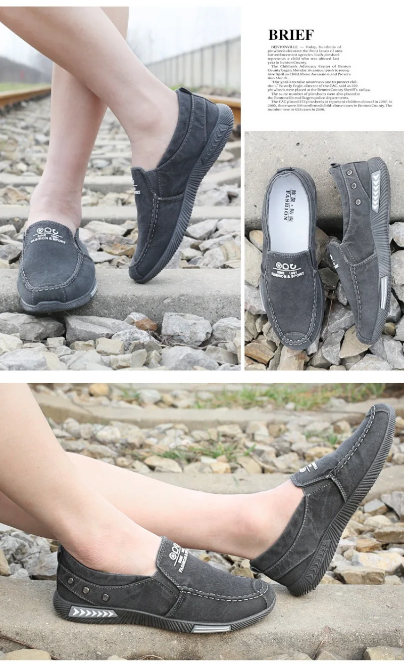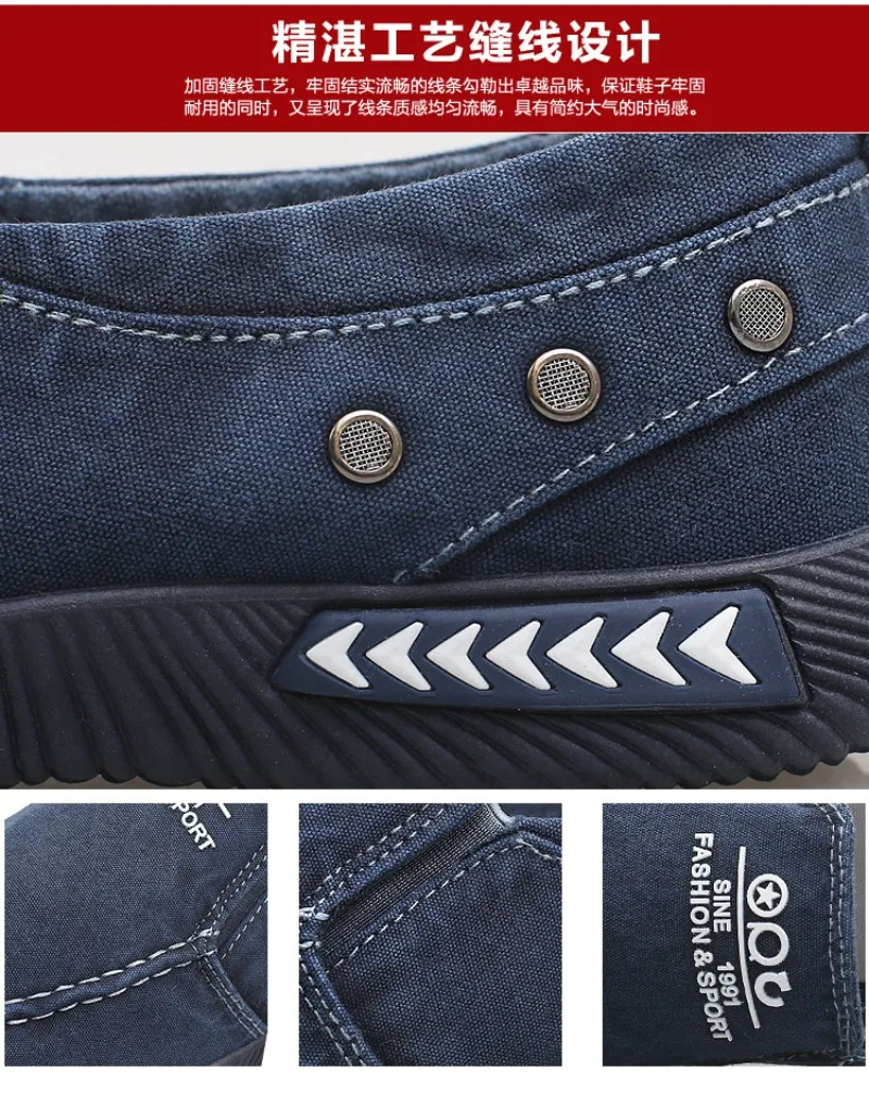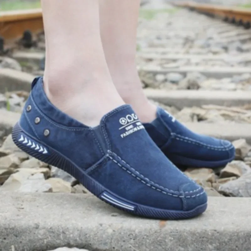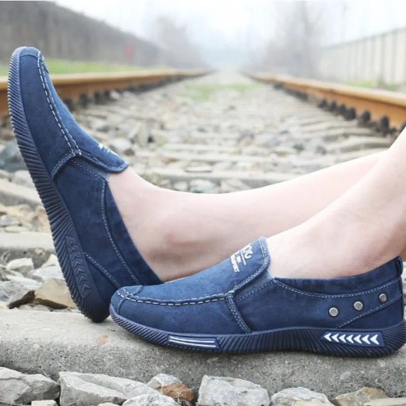 Cotton Shoes Mens Spring New Casual Canvas Shoes, Low Cut Breathable Lazy Shoes Denim Male Loafers Soft Soled Work Shoes for Men