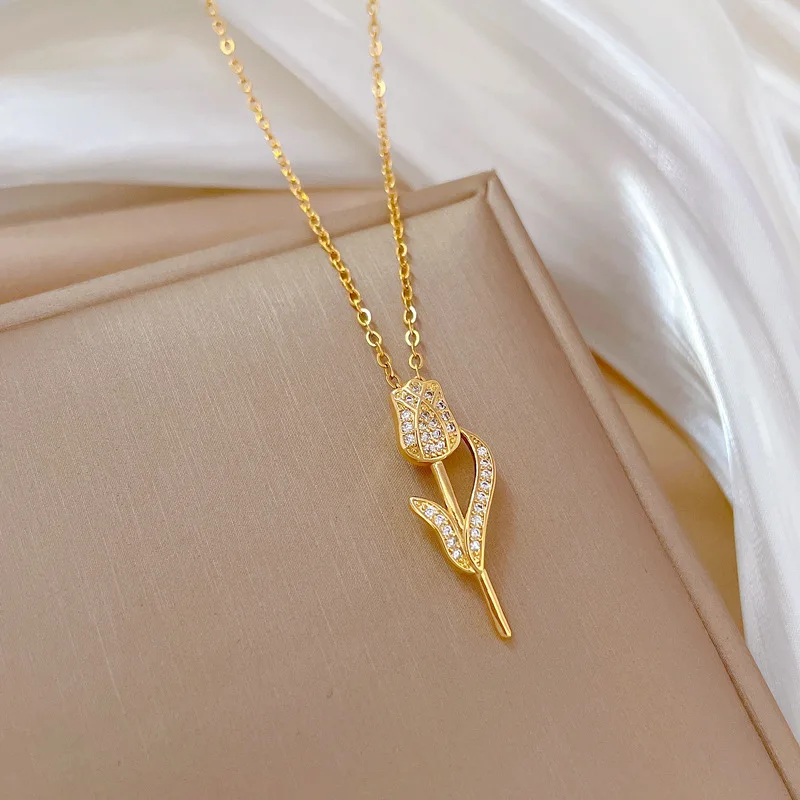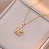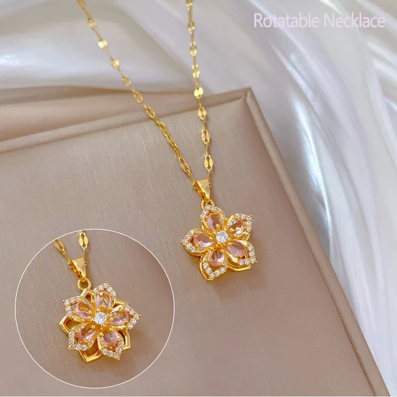 Creative Rotatable Pink Flower Necklace For Women Titanium Steel Rotatable Spinner Clavicle Choker Anti Stress Anxiety Jewelry