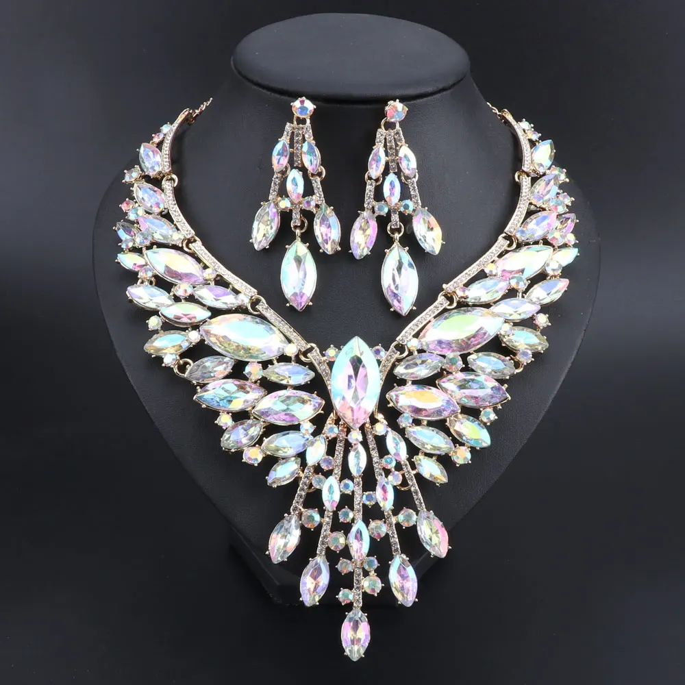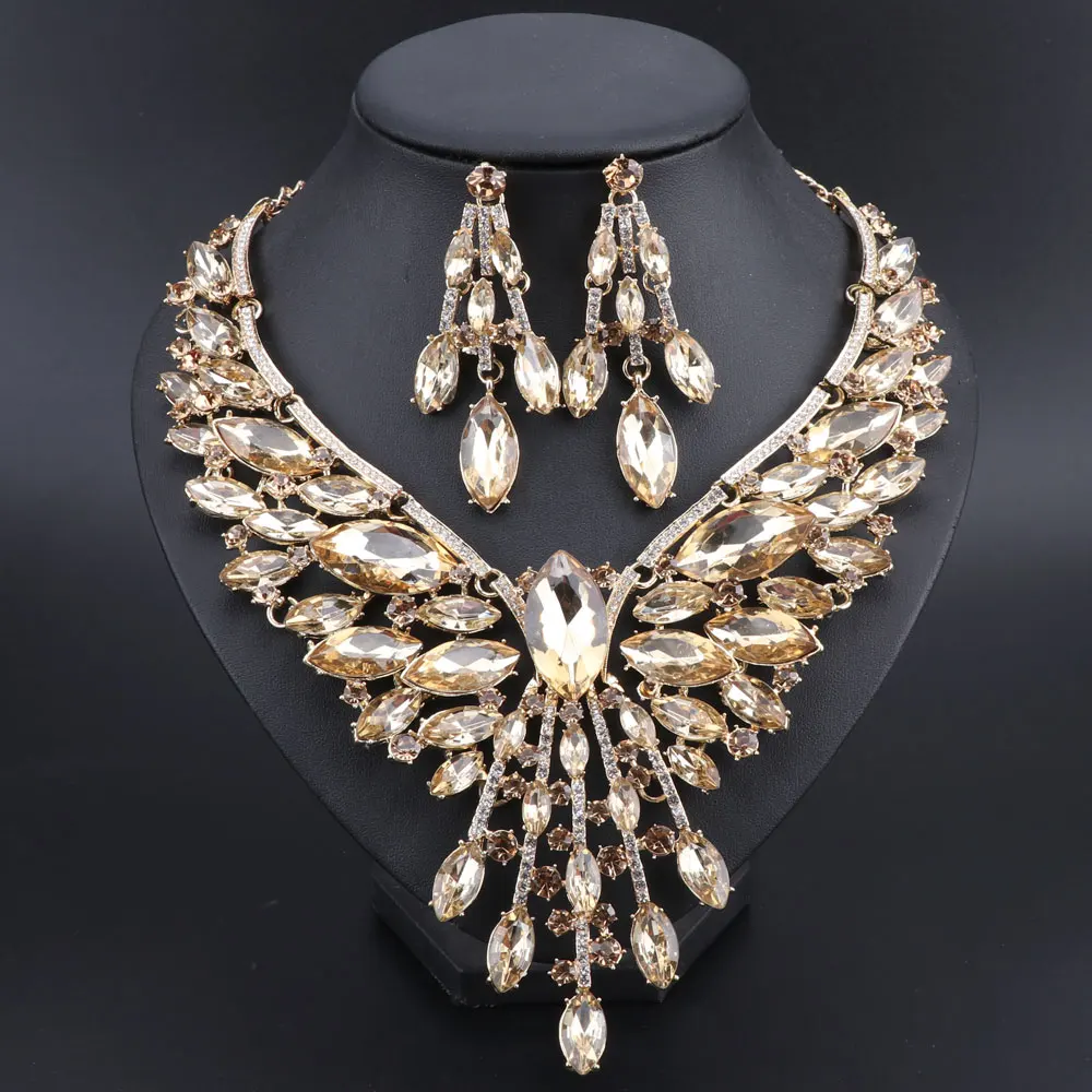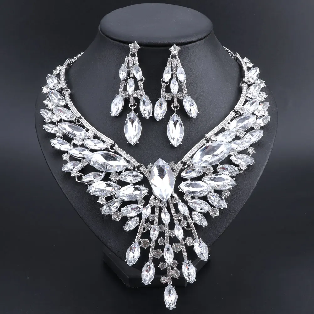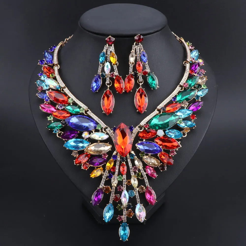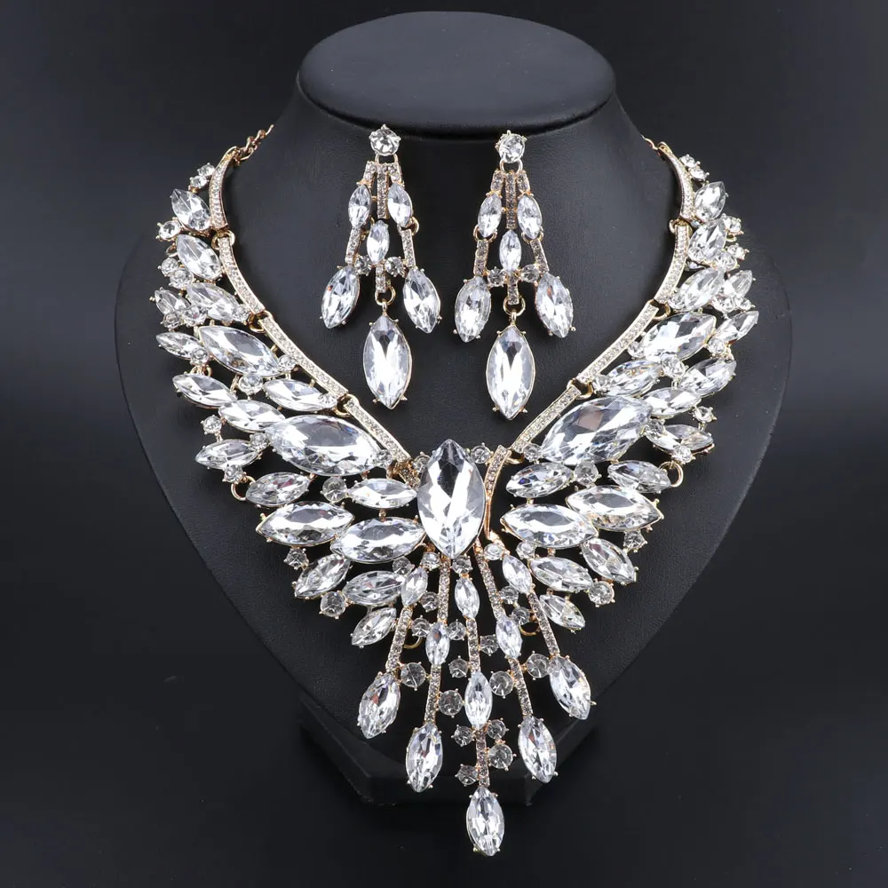 Crystal Bridal Jewelry Sets Wedding Party Costume Accessory Indian Necklace Earrings Set for Bride GorgeousJewellery Sets Women