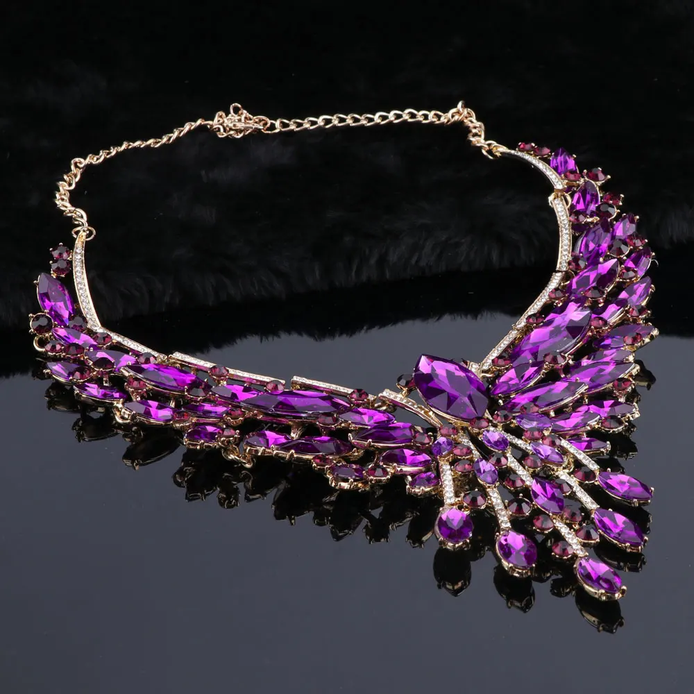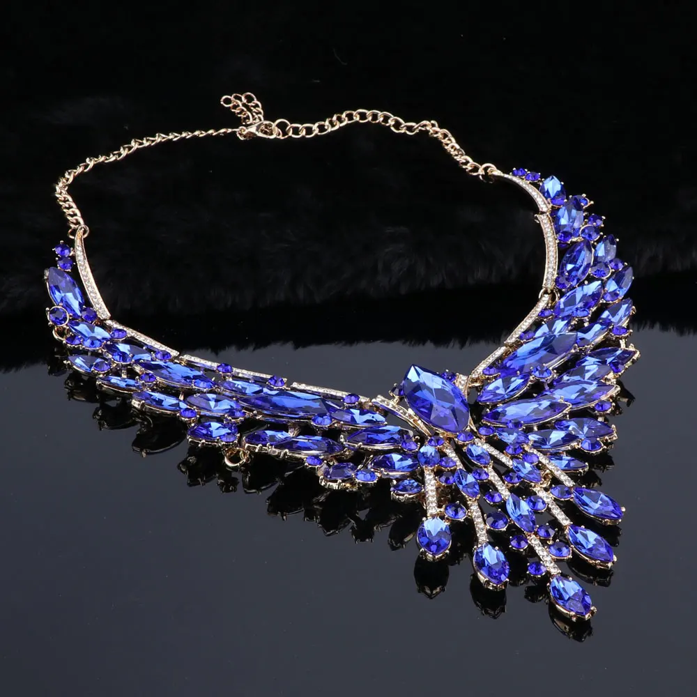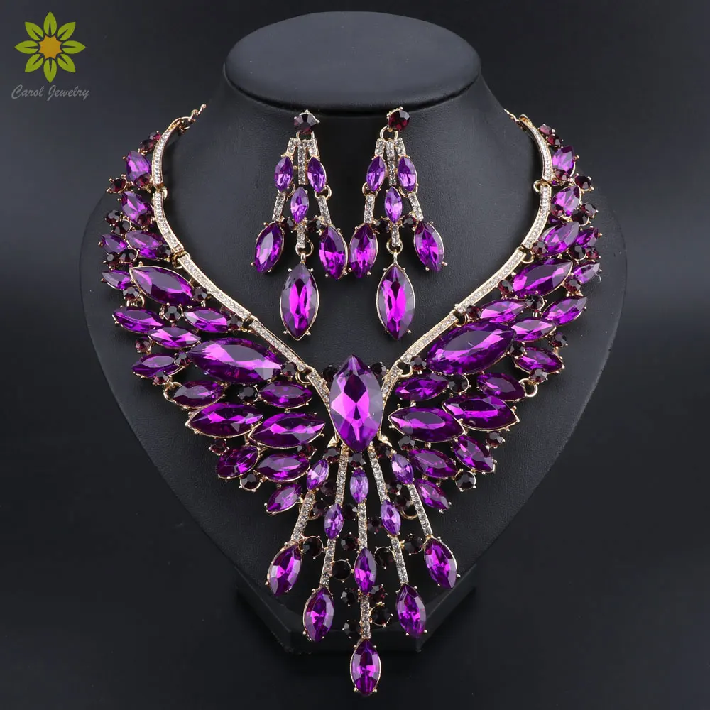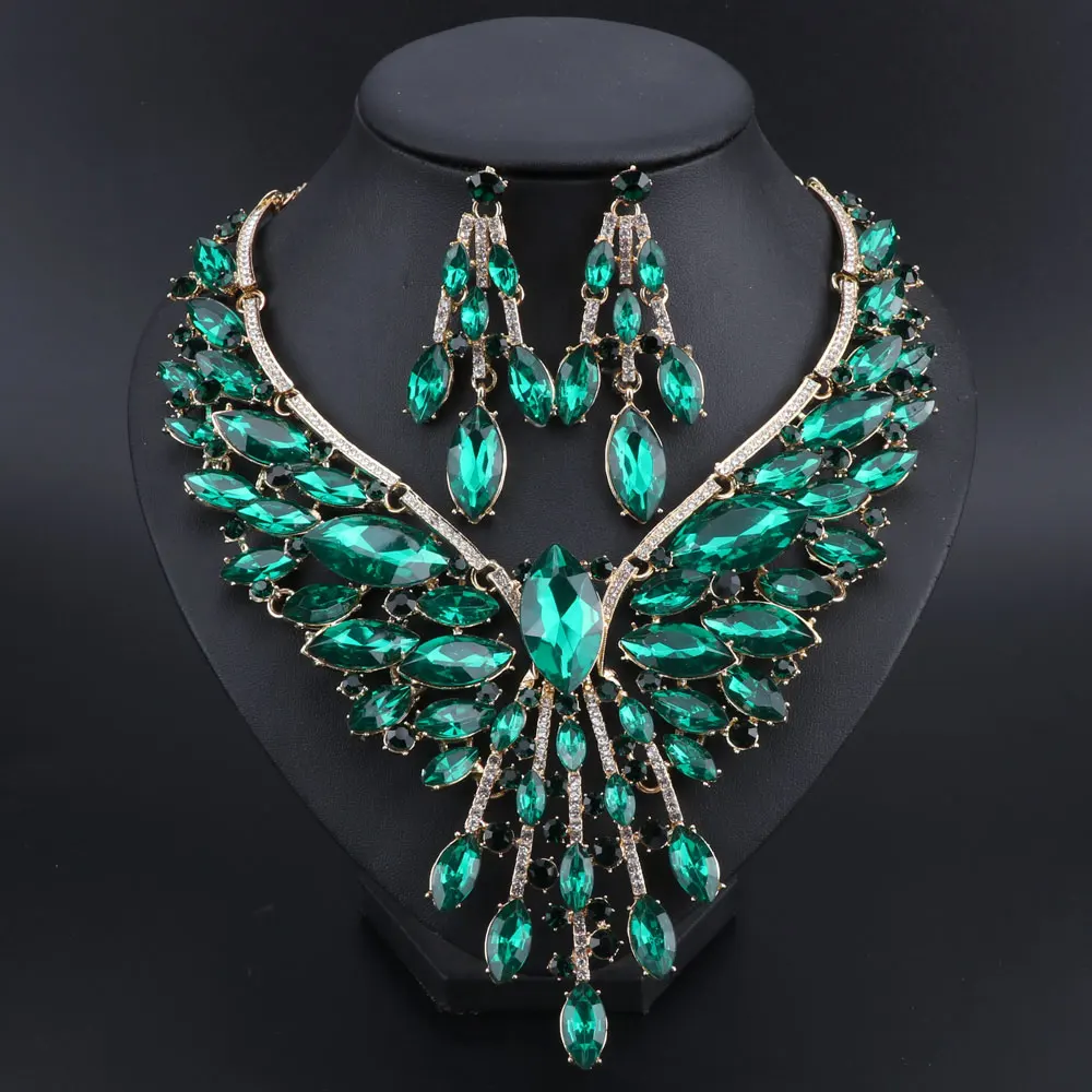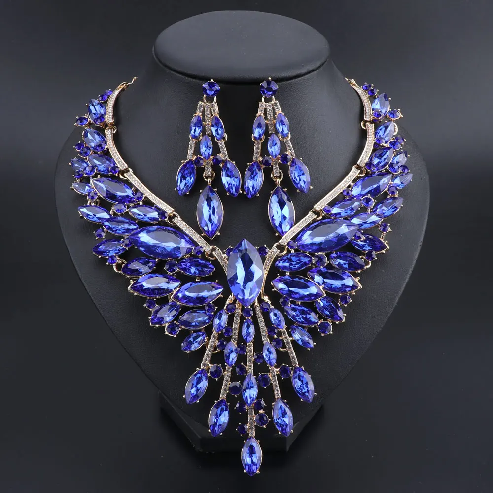 Crystal Bridal Jewelry Sets Wedding Party Costume Accessory Indian Necklace Earrings Set for Bride GorgeousJewellery Sets Women