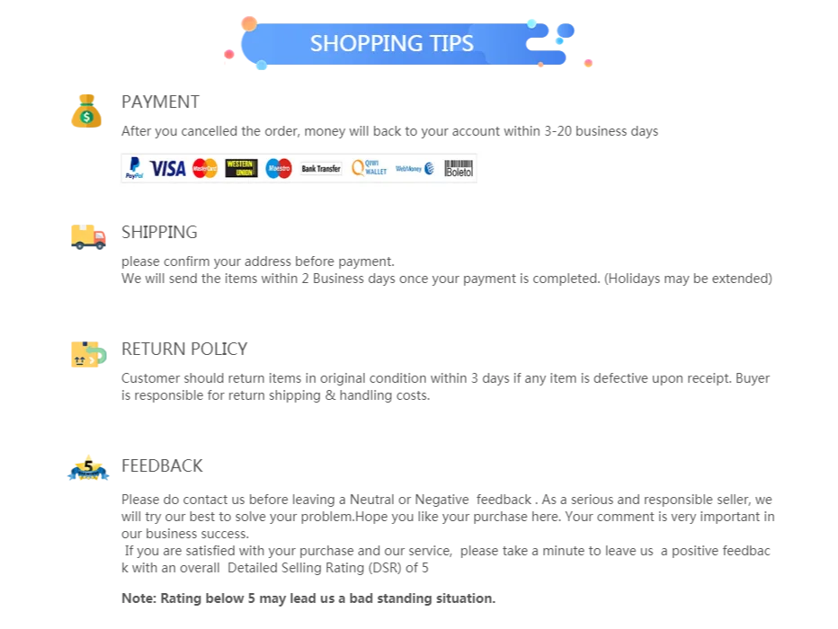 • If you do not want the product you’ve received you may request a refund but you must return the item at your expense and the item must be unused.