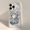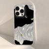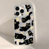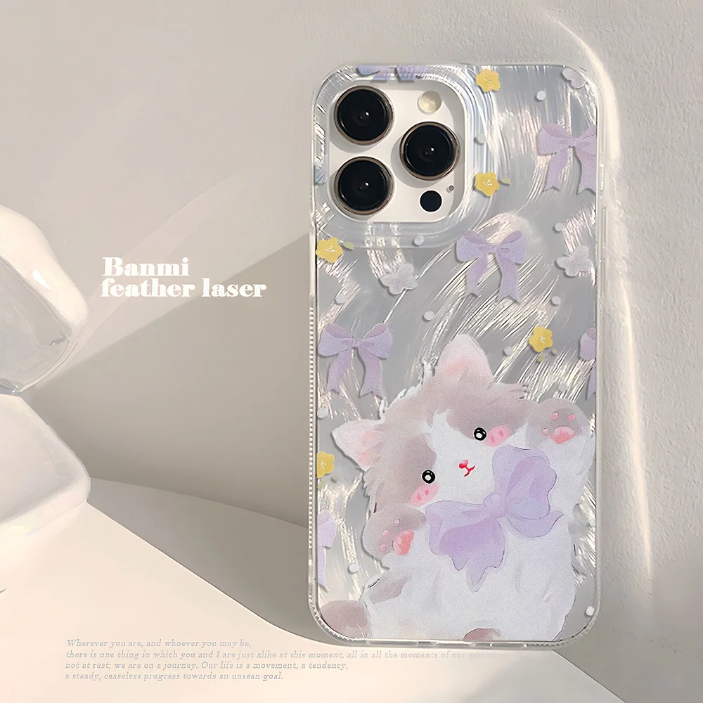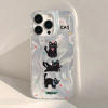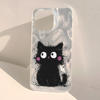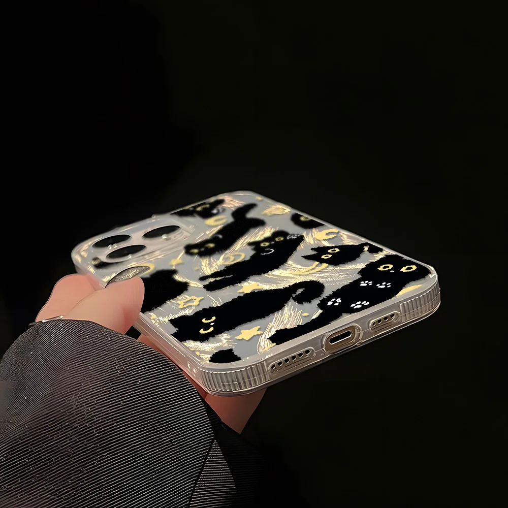 Cute Black Cat Phone Case For iPhone 13 Case iPhone 15 14 11 12 16 Pro Max Plus Laser Silver Feather Texture Shockproof Cover