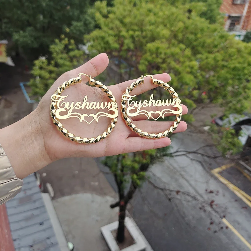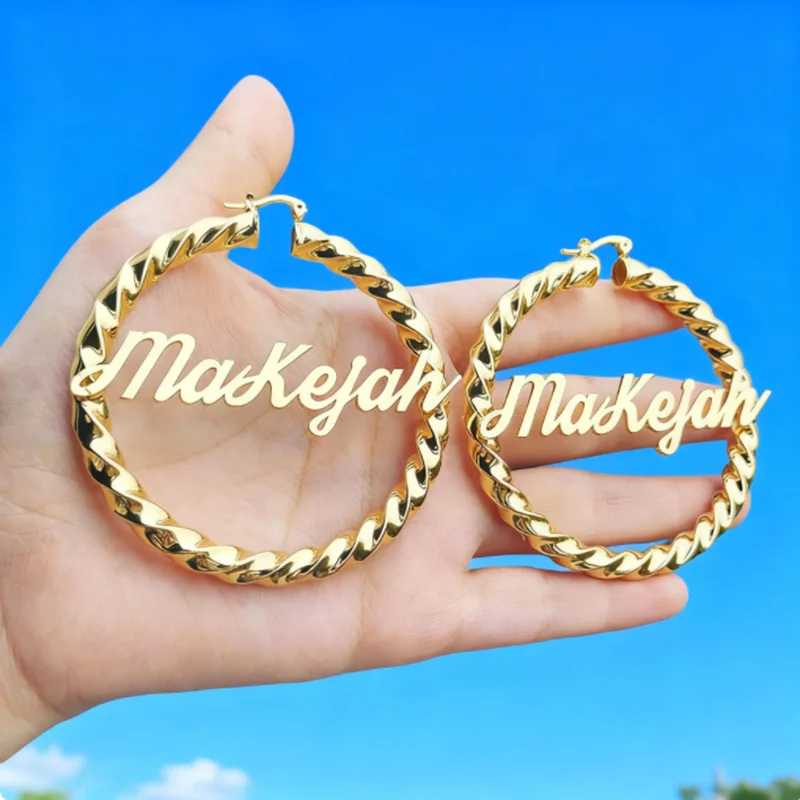 DODOAI New Custom Twist Hoop Earrings with Name, Bold Rope Earrings with Name,Customize Name Round Earring Personality Jewellery