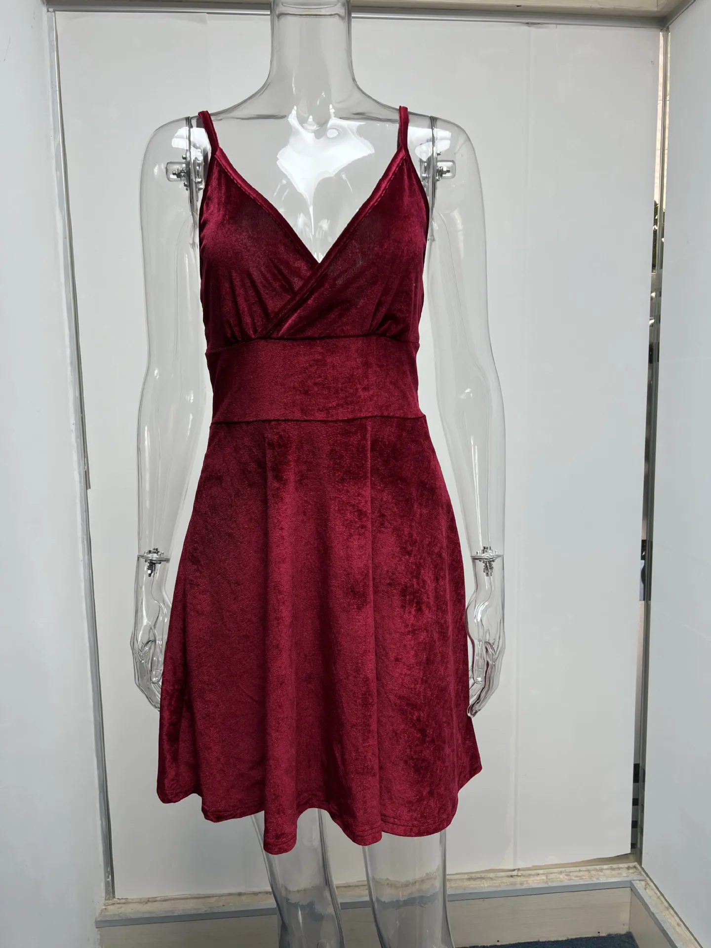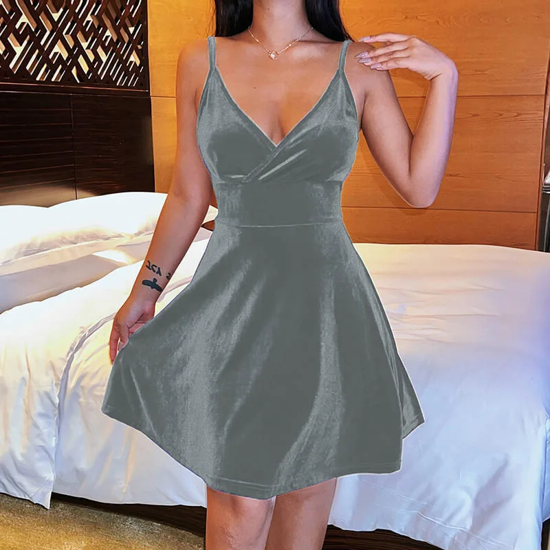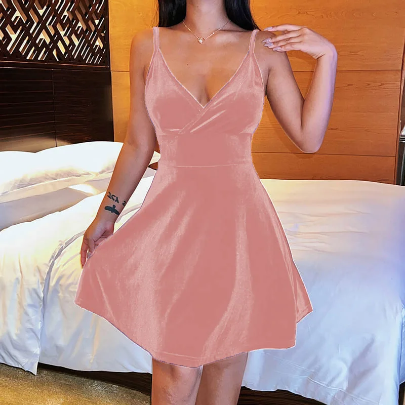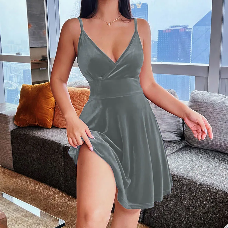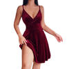 In the summer of 2022 the new Europe and the United States and sexy low-cut skirt woman pure color v-neck elegant temperament party condole belt dress
