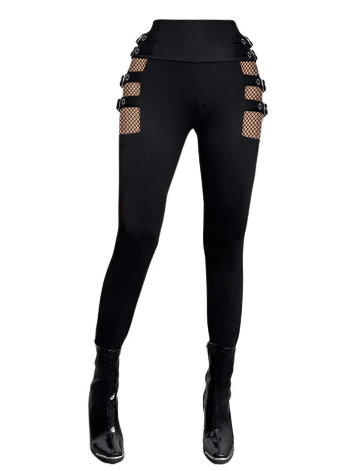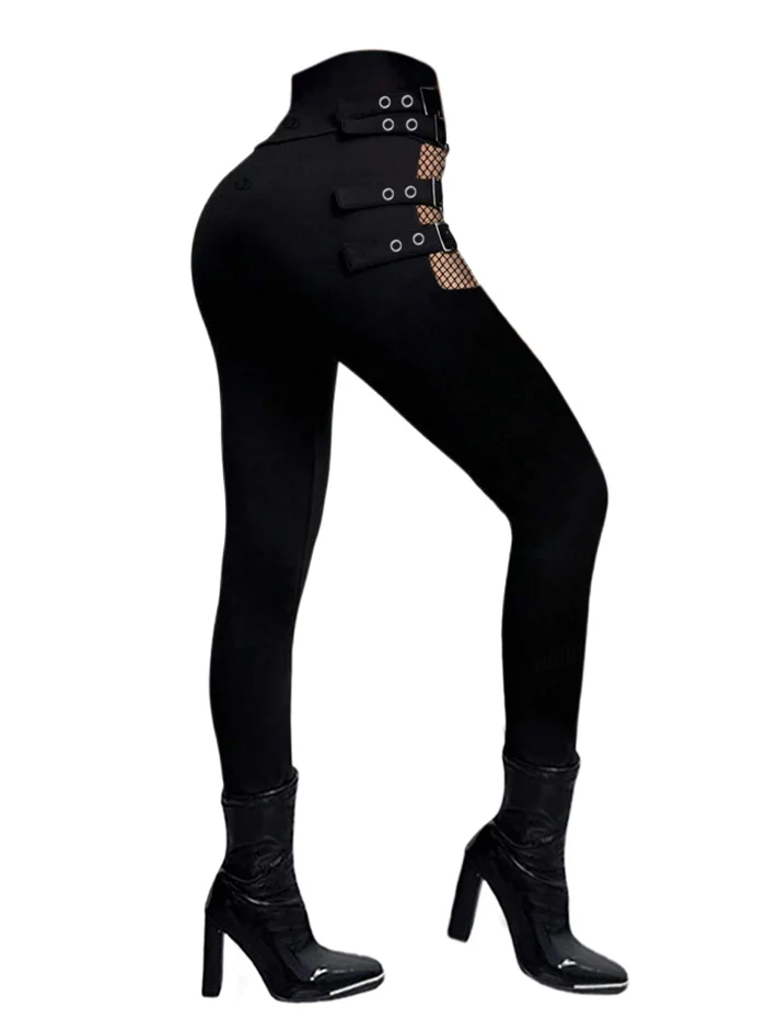 Dressfo 2025 New Women’s Pants Solid Color Hollow Out Gothic Pants Square Buckle Strap High Waisted Skinny Long Pencil Pants