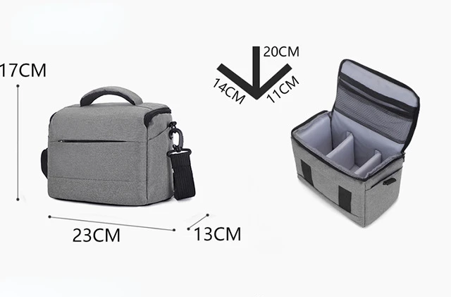 Bag for smaller cameras. My olmpus e-m10 + lens fits great. Very good quality. It smells little bit unpleasant, but it is sewn very neat and the sides are thick enough.