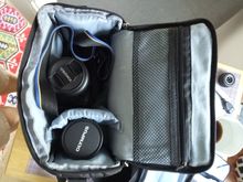 Bag for smaller cameras. My olmpus e-m10 + lens fits great. Very good quality. It smells little bit unpleasant, but it is sewn very neat and the sides are thick enough.