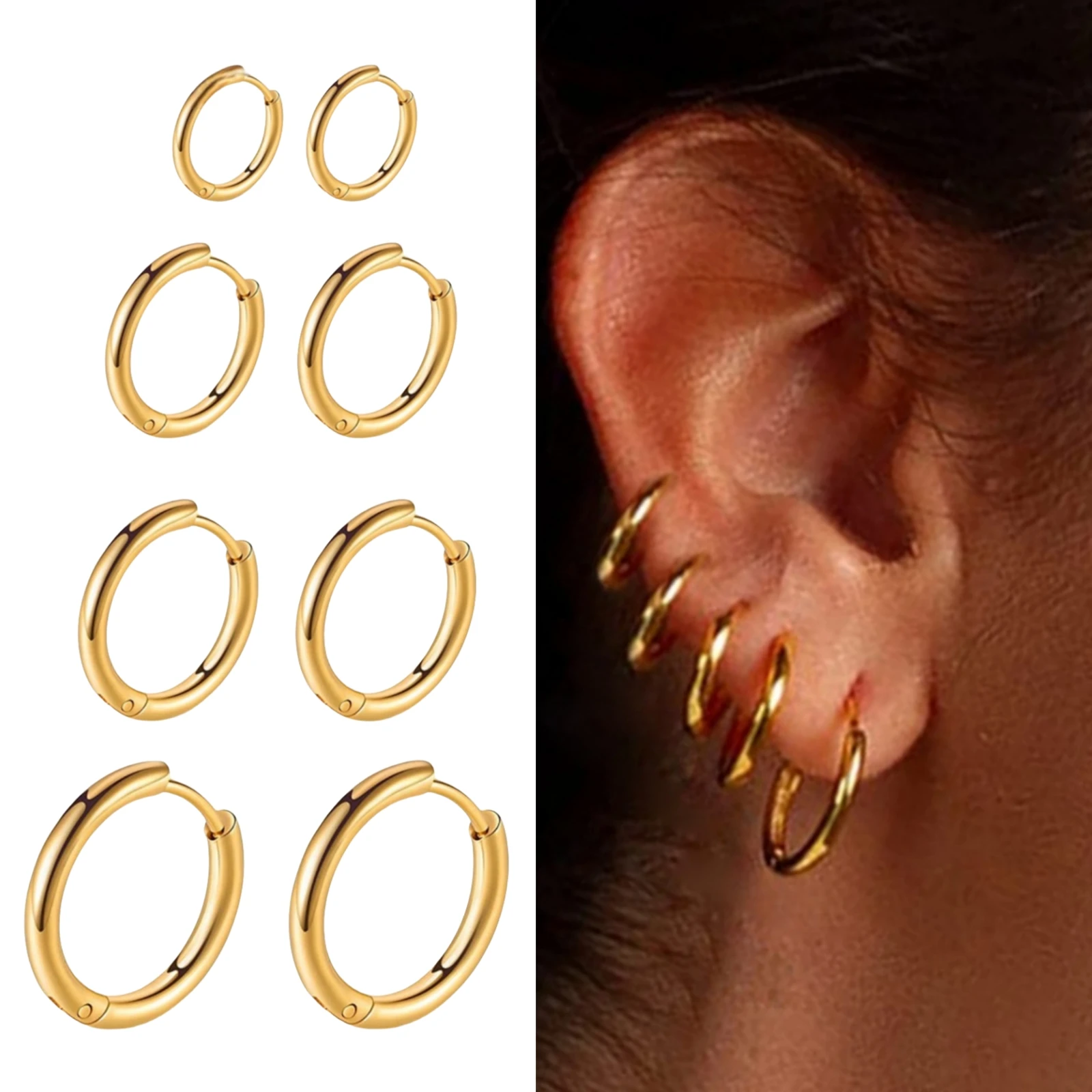 5 Pairs 14K Gold Plated Huggie Hoop Earrings for Women Lightweight Minimalist Small Hoops Multiple Piercing Stack Set Earrings