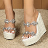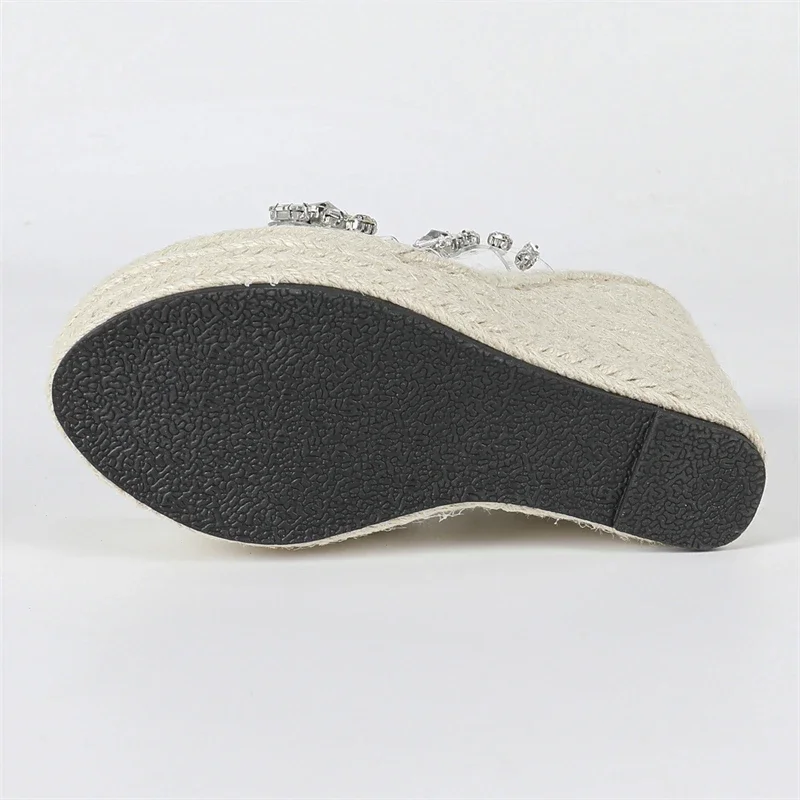 Eilyken Summer Crystal Diamond PVC Transparen Open Toe Solid Platform Wedges Slippers Women’s Fashion Weaving Heels Shoes