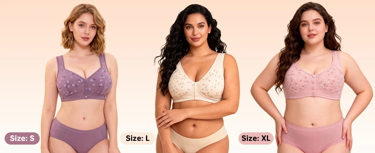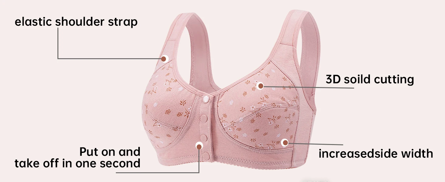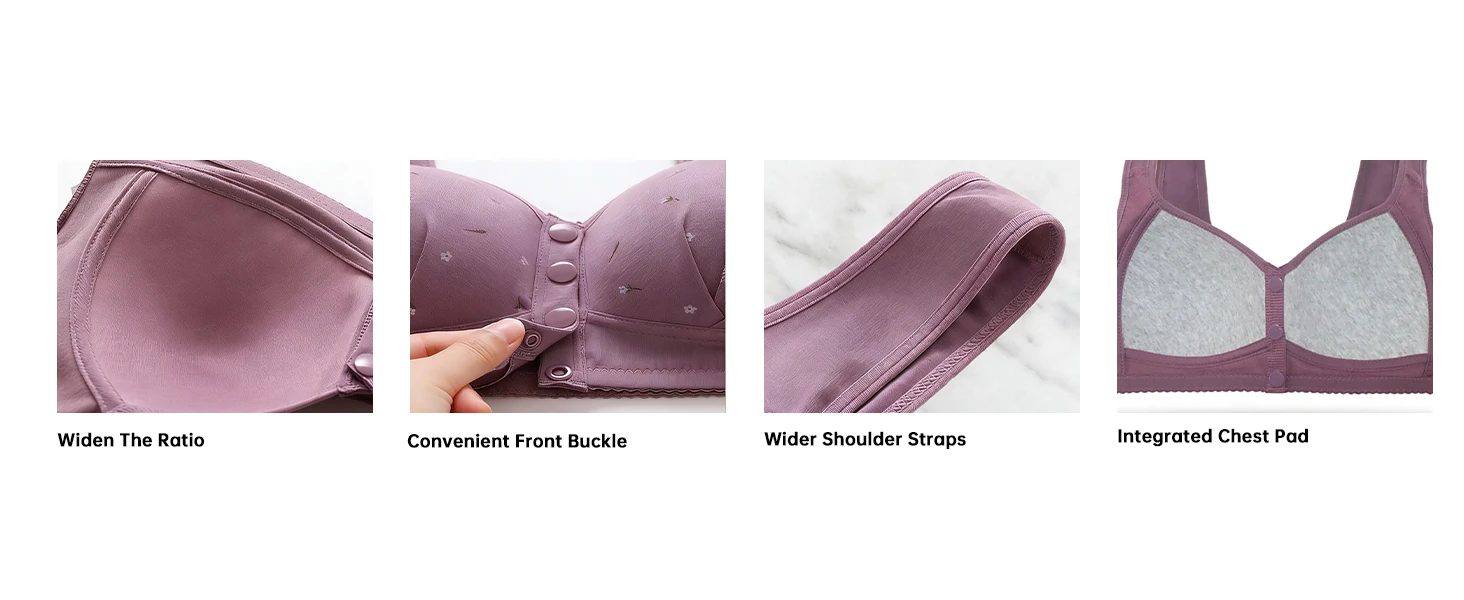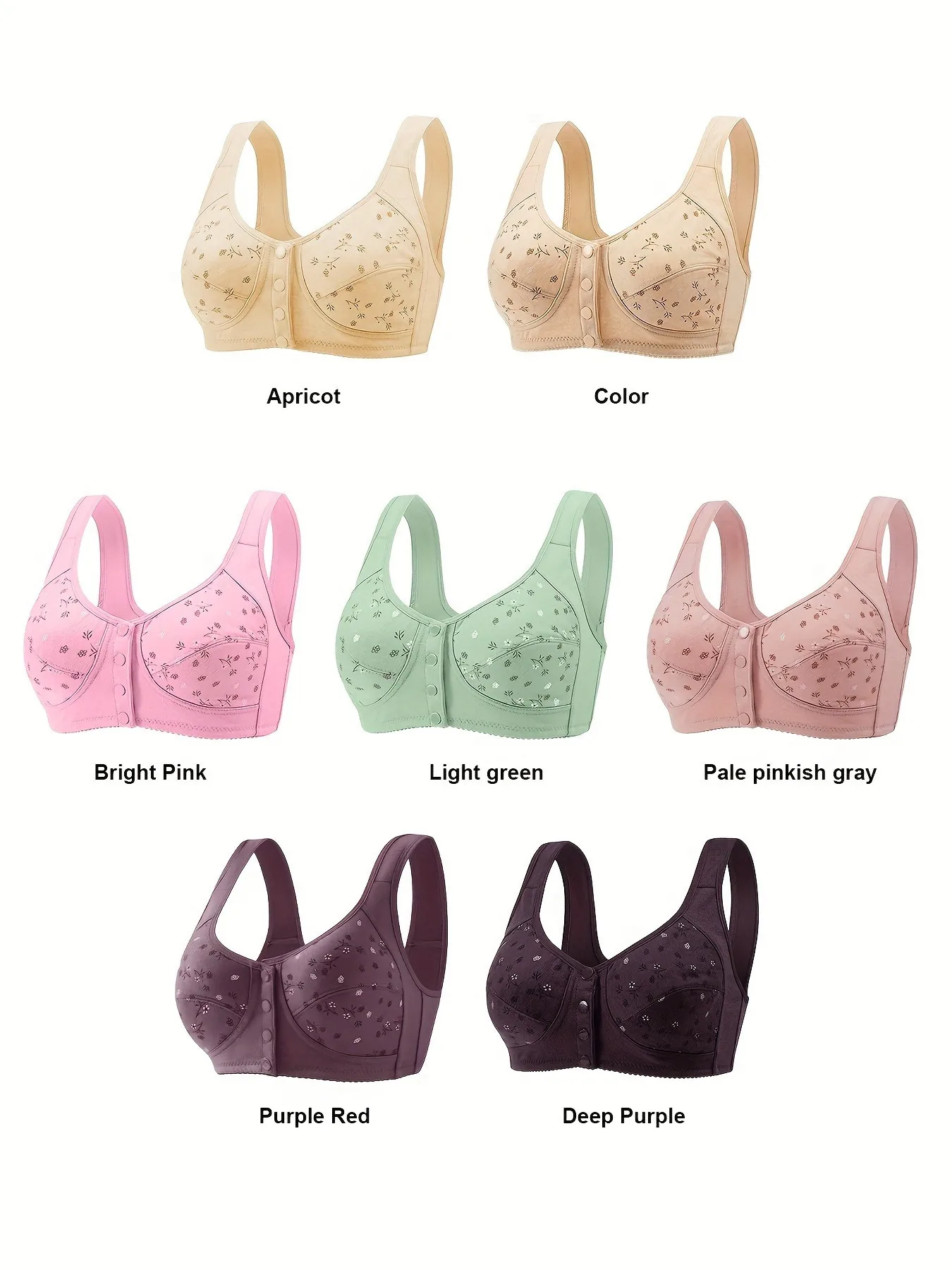 Elegant Front Buckle Floral Bra for Women – 7-Piece Set, Pressurized Support, Adjustable, Breathable, Ideal for Breastfeeding