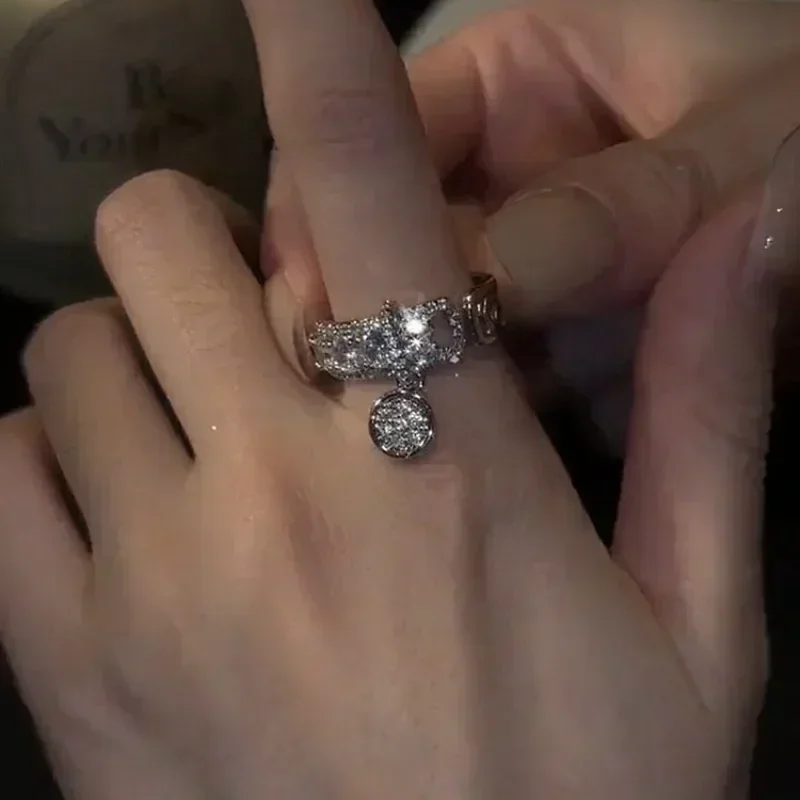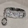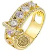 Engagement Jewelry Gifts Vintage Royal Blue Stone Ring Yellow Gold Color Luxury Female Wedding Rings For Women Round Dangle Ring