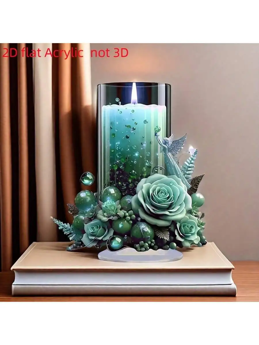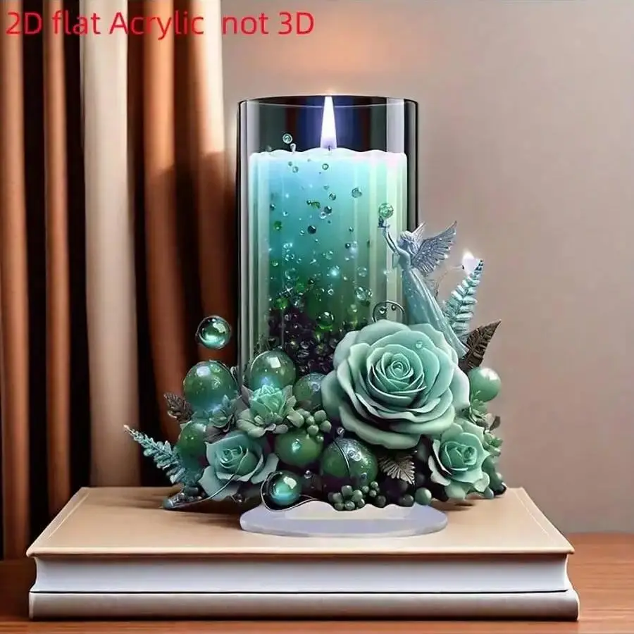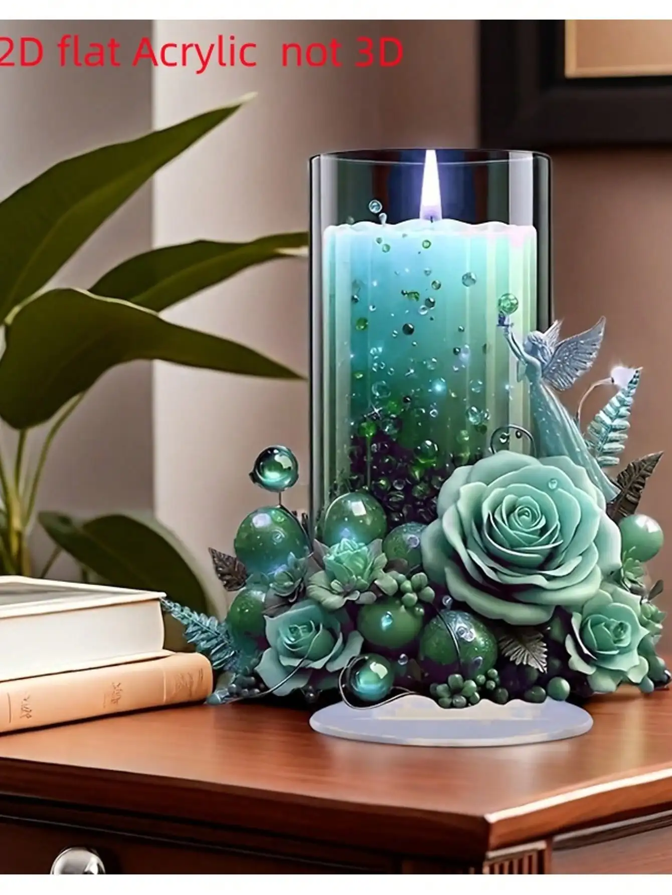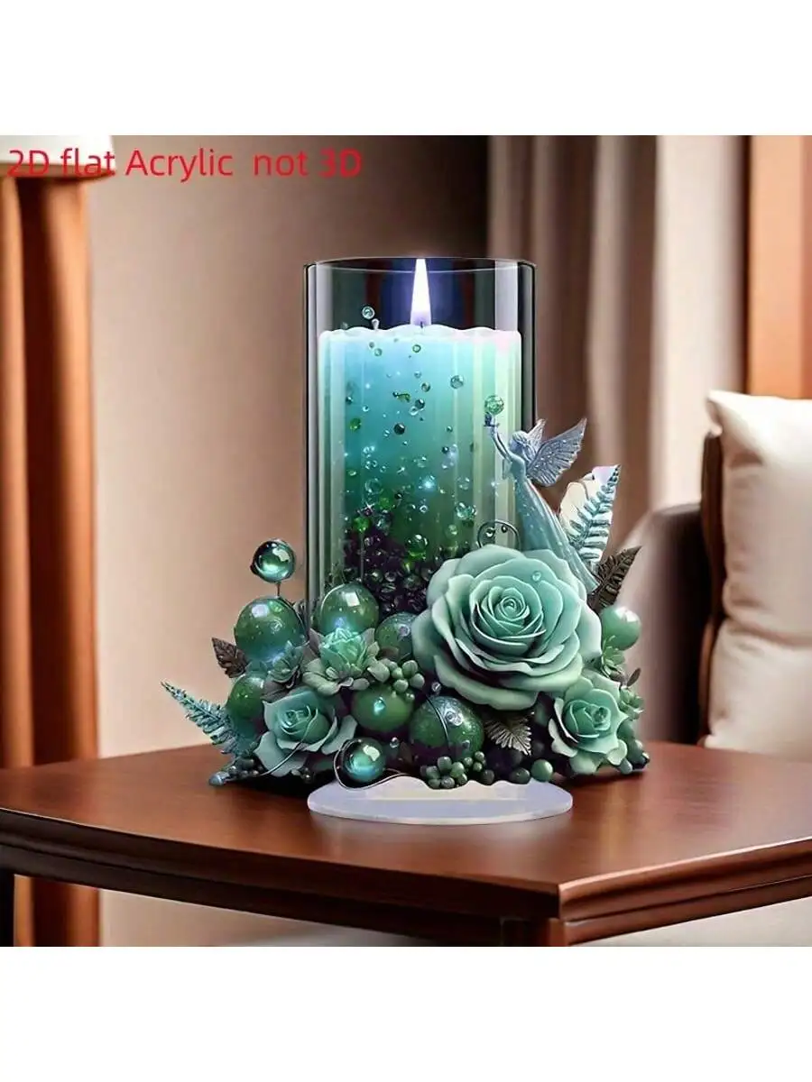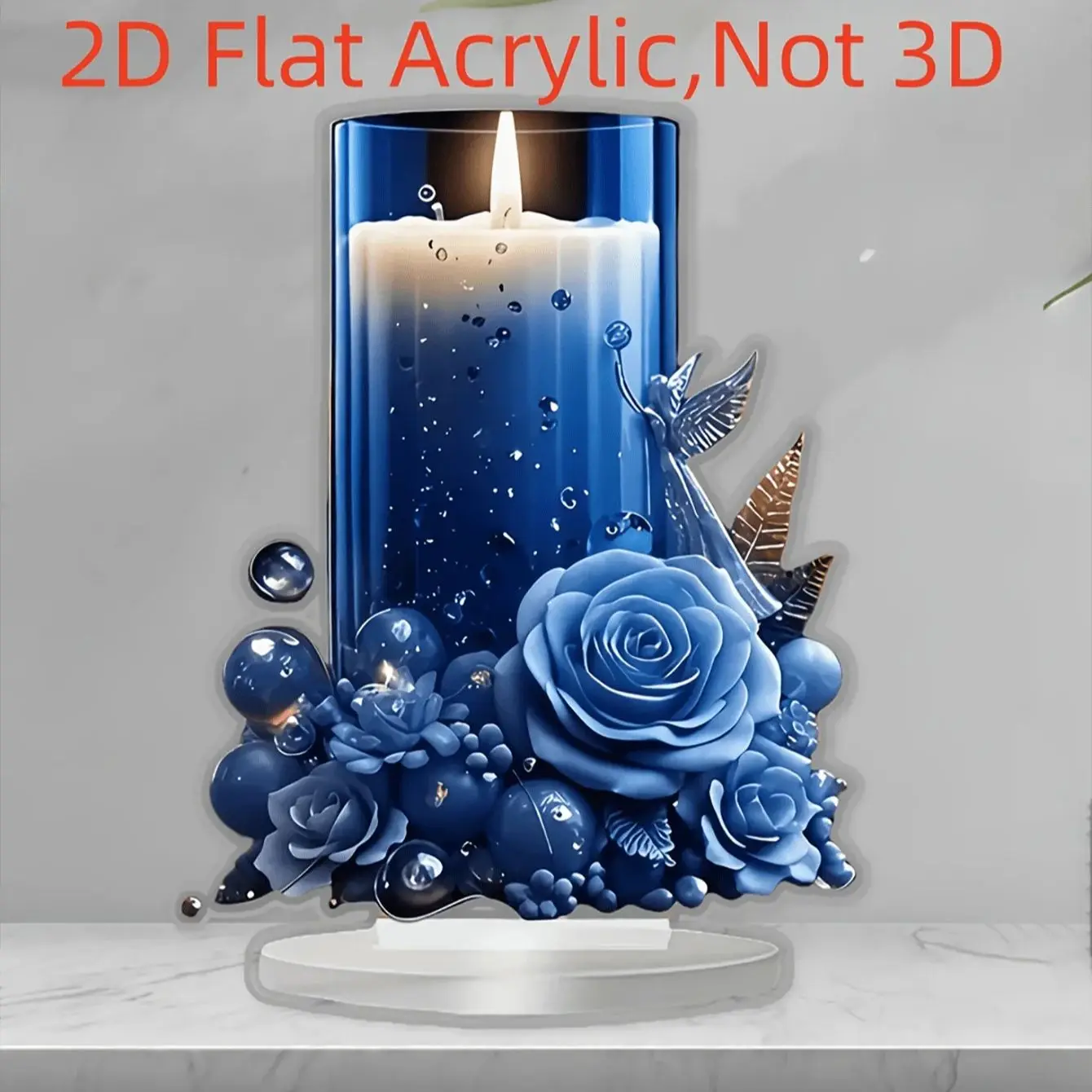 1 2D flat blue candle dining table decoration -8-inch art decoration decoration, friendship gift, gift for good friends, collectible statue, desktop plaque, suitable for living room, bedroom, study and office, holiday and party decoration