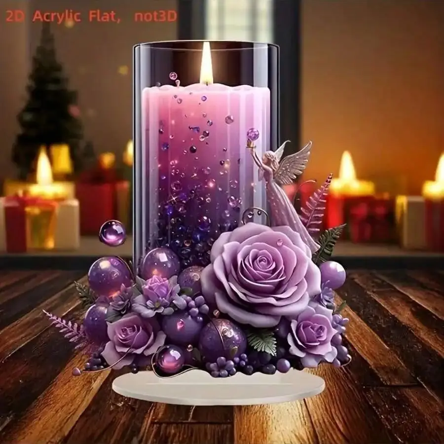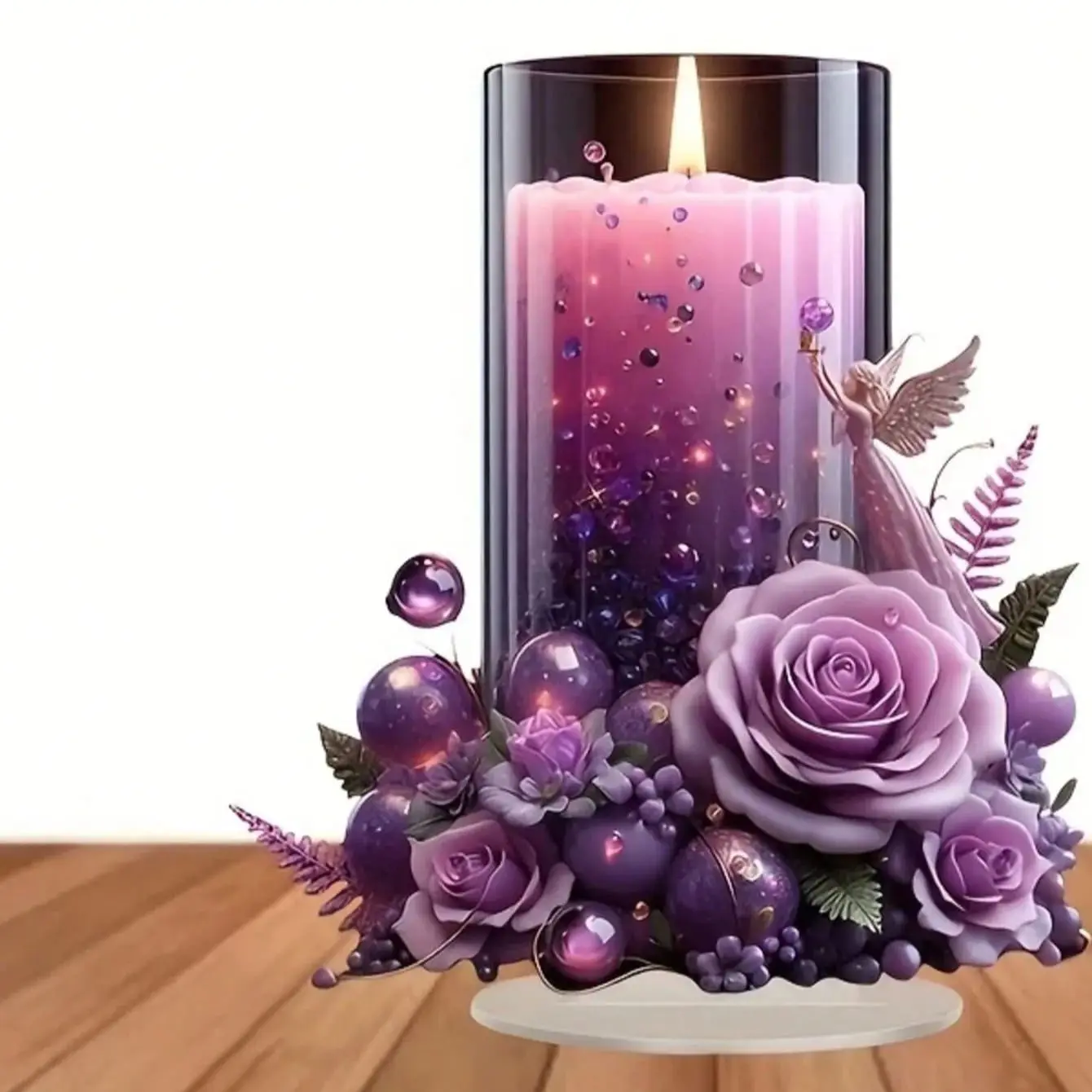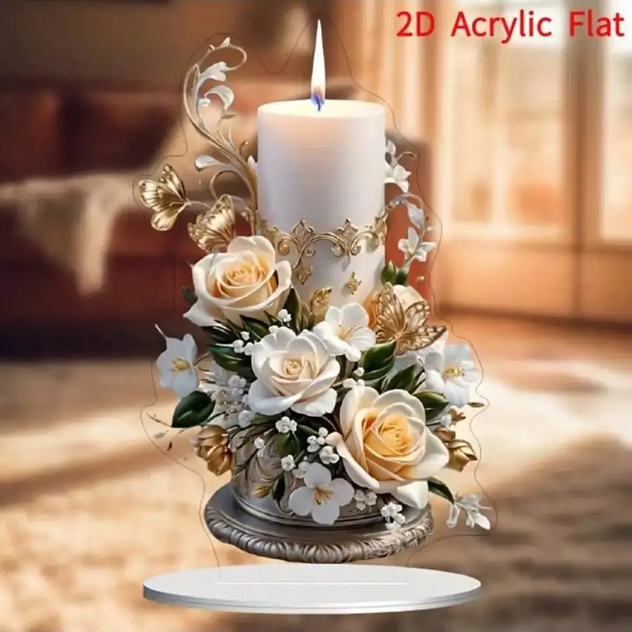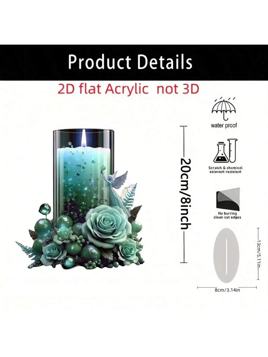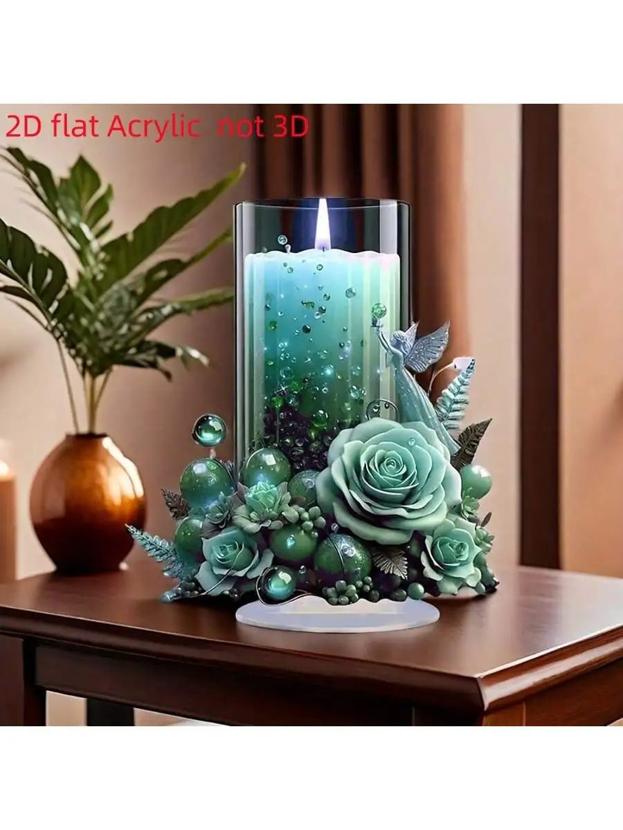1 2D flat blue candle dining table decoration -8-inch art decoration decoration, friendship gift, gift for good friends, collectible statue, desktop plaque, suitable for living room, bedroom, study and office, holiday and party decoration