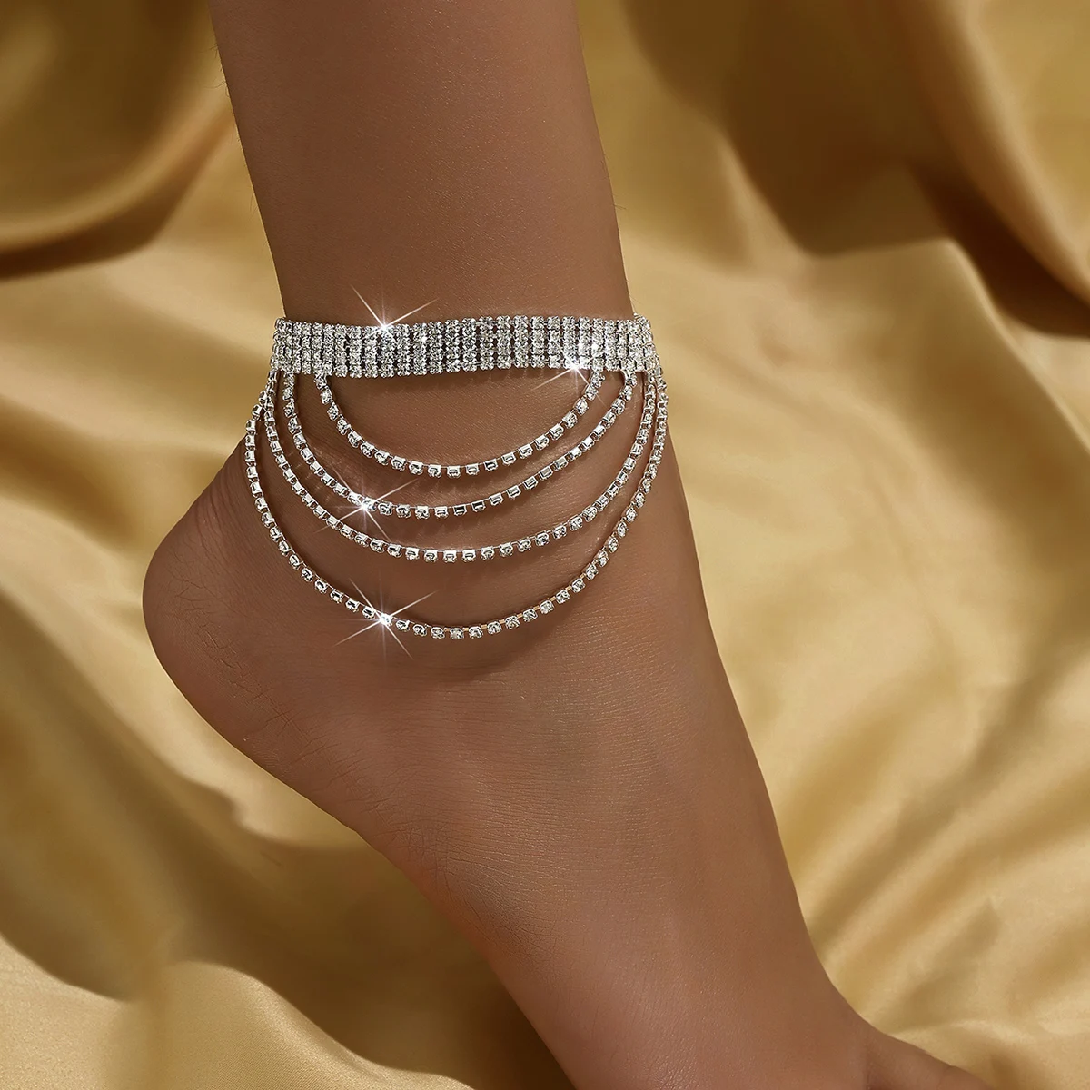 1 Women’s European and American trendy multi row rhinestone ankle chain outdoor tourism beach banquet party holiday gift