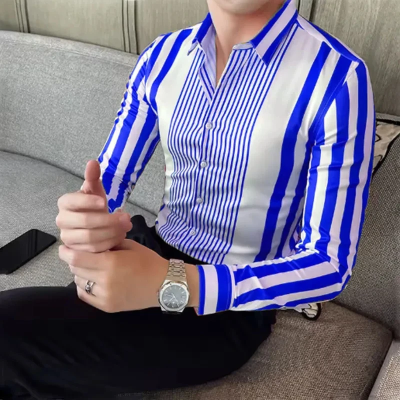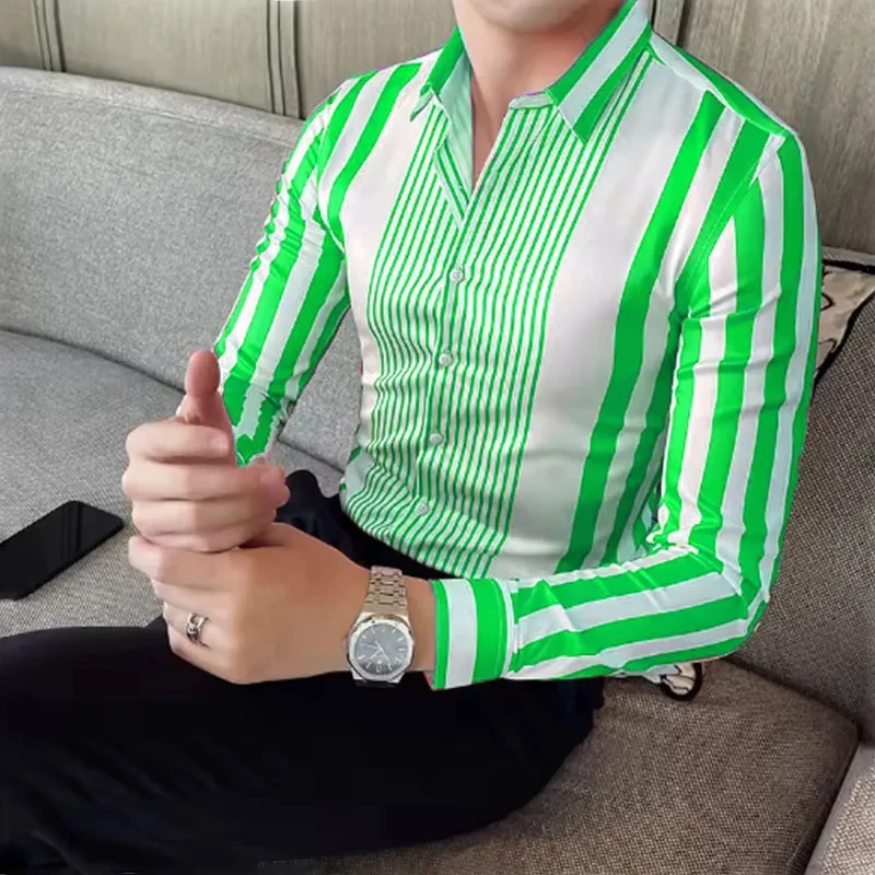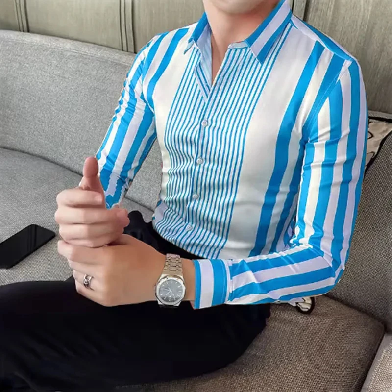 10 Color Striped Men’s Shirt Large Size Breathable Casual Men’s Top Comfortable Fabric Long Sleeve Shirt Lapel Fast Shipping